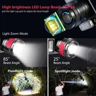Description 1. Material: high-quality aluminum alloy + ABS material, light and durable, anti-fall and wear-resistant 2. Lamp bead: This product adopts XPG high-brightness main core, and is equipped with red and blue LED warning lights to maintain a stable high-brightness field of vision at all times 3. Zoom: Rotary zoom design, taking into account both distance and near, mechanical telescopic zoom, with optical lens, bursting with powerful light 4. Charging method: Smart USB dual interface, compatible with various charging methods, and can also charge mobile phones in an emergency, convenient and practical 5. Intelligent induction: Long press the switch to turn on the induction mode, intelligent sensitive sensor, wave induction, free your hands 6. Lighting mode: 5 gears (main light: strong light/weak light/strobe, side light: white light/side light red and blue fast flash), you can adjust the angle and light source according to your own needs, easy to operate and easy to use 7. Suitable for: camping, mountaineering, cycling, night fishing, night running, dog walking, maintenance and exploration, etc. Package includes 1*Headlamp 1*Headband 1*Charging Cable Product Highlights Name: USB rechargeable zoomable bright LED headlight Colour: Black Light color: white light + red and blue light Lamp bead: XPG+ red and blue LED Charging method: USB charging Battery: built-in rechargeable lithium battery Battery capacity: 2000mAh Charging time: 3-5h Battery life: 4-25h (100% strong light 10-12h, 50% medium light 18-20h, 25% low light 35-40h) Lighting mode: 5 gears (main light: strong light/weak light/strobe, side light: white light/side light flashes red and blue quickly) Whether to zoom: zoom Power display: 4*LED display lights (25%-50%-75%-100%) Sensing distance: within 15cm Maximum range: 300m Waterproof grade: IPX4 Product size: 45*92mm Product net weight: 128g