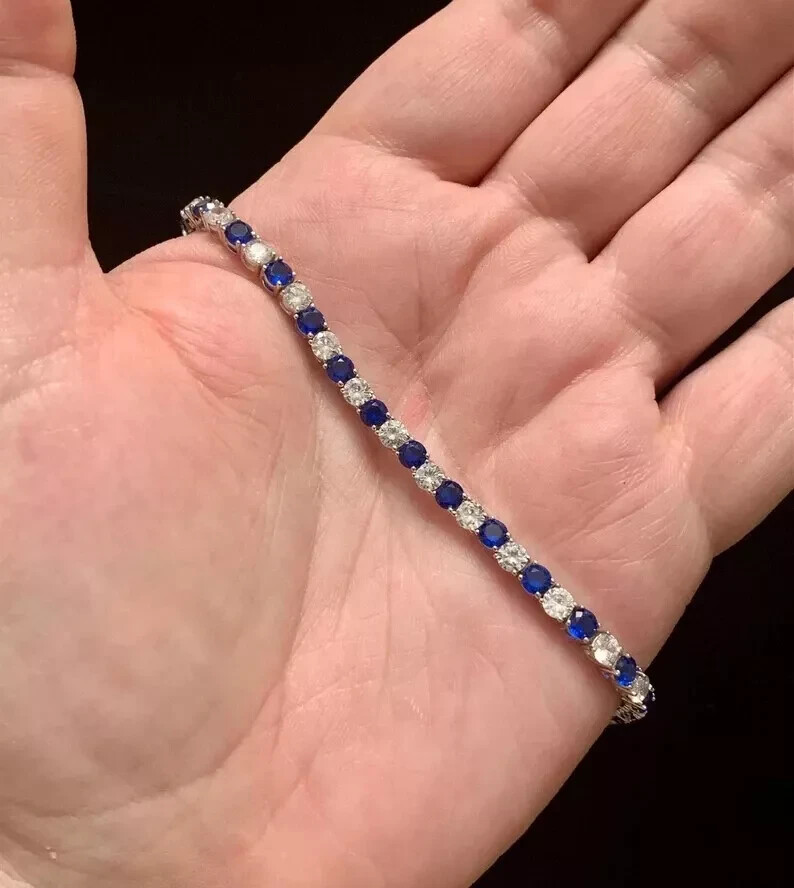$ 439.767 Ct Round Cut Moissanite " 7 " Tennis Bracelet 14k White Gold Plated For Gift