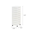 You may also like Rolling Storage Cart Baskets W/ Organizer Top 6 Drawer Hobby Rooms Dorm Offices 44.64 USD 46.99 USD Free shipping 5% off Is your desk overrun with sloppy stacks of paper? Too much clutter in your craft space? This 9-drawer cart can help you get organized in no time. Nine drawers hold everything from craft supplies to reams of paper, so your space stays tidy. Each drawer accommodates 8.5" x 11" letter size paper and the built-in divided organizer top keeps extra-small items organized and accessible. Excellent IRIS USA storage and organizational solution for offices, hobby rooms, dorm rooms, and more Divided organizer top is great for keeping small accessories organized and within reach Built-in drawer stops prevent drawers from falling out when opened Smooth-glide casters provide easy mobility Dimensions: 14.25"L x 12.05"W x 36.19"H You may also like Rolling Storage Cart Baskets W/ Organizer Top 6 Drawer Hobby Rooms Dorm Offices 44.64 USD 46.99 USD Free shipping 5% off