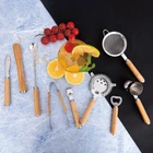 Bartender Kit 9-Piece Bar Tool Set Cocktail Shaker with Wooden Product Details Material: Wood, Stainless Steel Brand: JNWINOG Color: Wooden Included Components: Cocktail Shaker, Jigger, Ice tongs, Muddler, Bar Spoon Number of Pieces: 9 Manufacturer: JNWINOG Package Dimensions: 10.43 x 4.69 x 3.82 inches Item Weight: 1.15 pounds Item model number: Wooden Tools Finish types: Stainless Steel Care instructions: Hand Wash Assembly required: No Batteries required: No 【9-Piece Bar Tools Kit】This bar tool set accessories consists of a 0.68oz & 1.35oz Jigger, a strainer, a bar spoon, a muddler, a ice tongs, a bottle opener,a Cheese Knife, a lemon Peeler, a Fine Mesh Strainer, It has all the bar accessories and is great for making many cocktails, so you can become a professional bartender to lay the foundation. 【Stainless Steel Bar Tool Set】Our bartender kit is made of thickened Durable 304 stainless steel material and wood to protect from rust and leak for a lifetime,easy to use and clean.Bartender Accessories is very easy to clean by hand with warm soapy water and keep their shine with ease, Adding modern art to your home bar. 【UNIQUE WOODEN HANDLE DESIGN】All of our wooden 9 piece bar tool set are designed with brand new wooden handles, which feel better in your hand when you use them, insulate against heat and freezing, make your home bar more beautiful and stylish, addding a modern, sophisticated touch. 【Novel gift ideas】If you have Someone with a passion for bartending around you, then this will be a perfect gift for them! You can use it as an exquisite gift for any occasion such as birthday, Christmas, Valentine's Day, Father's Day, Mother's Day, wedding, anniversary, housewarming! 【Risk-free Purchase】We will provide you with a full range of services and the best support, if you have any questions about our products. Please tell us at the first time, we will help you solve any related problems within 24 hours.