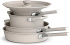 The 9-Piece StoreMore Cookware Set is the perfect blend of functionality and space-saving design, ideal for home chefs who want performance without sacrificing kitchen space. Each piece nests together, saving up to 50% more space, making it perfect for any kitchen, big or small. Available in four stylish colors—Oatmilk, Surf, Plum and Black—this pots and pans set complements any kitchen décor and is a thoughtful addition to wedding registries, housewarming gifts, new apartments, or even college dorms. Crafted with our Ceramic Nonstick Coating, which is free from PFAS, PFOA, PTFE, lead, and cadmium, you can cook with confidence knowing that your meals are healthier and your cookware is eco-friendly. This versatile set includes a 2qt saucepan, a 5qt saucepan, a 10" deep wall fry pan with a helper handle, and a 3.5qt sauté pan—perfect for creating a wide range of dishes. Imagine whipping up a vibrant Moroccan tagine, a rich and creamy Thai coconut curry, or a colorful Spanish paella, all with ease. Compatible with all stovetops, including induction, and oven safe up to 325°F, this non stick pots and pan set offers flexibility and convenience. Plus, cleanup is a breeze with dishwasher-safe pieces, though hand washing is recommended to maintain their pristine condition. The cooking set is not just a practical addition to your kitchen—it’s a stylish, thoughtful gift that’s perfect for any occasion.
