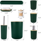 9-Piece Dark Green Bathroom Accessories Set with Trash Can, Tray, Soap Dispenser, Toothbrush Holder, Toothbrush Cup, Soap Dish, Toilet Brush and Q-tip Holders for Bathroom/Housewarming Style Traditional Included Components Soap Dispenser Soap Dish Toothbrush Holder Toothbrush Cup Trash Can Toilet Brush and Holder Tray Q-tip Holders Soap Dispenser Soap Dish Toothbrush Holder Toothbrush Cup Trash Can Toilet Brush and Holder Tray Q-tip Holders Plastic 【Hunter Green Bathroom Accessories Sets Complete】9 pieces hunter green bathroom set includes 1 x soap dispenser, 1 x toothbrush holder, 1 x toothbrush cup, 1 x soap dish, 1 x trash can, 1 x toilet brush set, 1 x vanity tray and 2 x qtip holders. Having most of the items you need for your bathroom will make your bathroom more eye-catching. 【Durable and Amazing High Quality】Our dark green bathroom accessories is made of high-quality PP and ABS material, which is not easy to break, more durable and long-lasting, outperforms glass, ceramic, resin, wooden bathroom sets. Premium plastic emerald green bathroom sets are durable and they will stay elegant and new over time. 【Fully Functional Completed Set】Hollow trash can makes it easier for you to throw away garbage. Double-layer hollow design soap dish can keep soap dry. Q-tip holders can put qtips, cotton balls, flossers, bath salts, hair bands or any other bathroom necessities and accessories. Soap dispenser, toothbrush cup, and toothbrush holder are the perfect complement for the bathroom. Bathroom accessories are the perfect addition to your bathroom home-style makeover. 【Easy to Clean & Stay Tidy】This dark green bathroom accessories set with trash can is designed with ease of cleaning in mind, avoiding excessive grooves and hard-to-reach corners. Its smooth surface and simple line make the cleaning easier. Just wash with soapy water and a soft cloth to make your bathroom look like new again. It not only saves your precious time, but also meets the requirements of modern life. Convenient and simple concept make you to enjoy a more comfortable and relaxed life. 【Widely Application】Bathroom set perfect for bathroom decors, dorm, hotel, apartment, laundry room, basement, RV, etc.Perfect for wedding,housewarming/new home gift,birthday gift, mother’s day gift , valentine’s day gift,thanksgiving gift,Christmas gift,bridal or baby shower gifts,friend, sister, co-worker or just about anyone to use all year round.