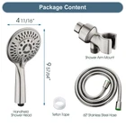 Upgrade Your Basic Fixed Shower Head to Our Handheld Showerhead Set - 4.7” wide face can be used as a hands-free overhead shower or wand use, enhancing your shower experience with flexibility and mobility 9 Spray Settings - This handheld shower head offers various modes for a full-body spray experience, including wide rain, rinse, pulsating massage, misty, water saving and more. Pick your favorite functions to enjoy the relaxing rain spa Durable Design - The high flow shower head is crafted from rustproof ABS material, offering lightweight, heat resistance, and long-lasting durability. High-quality silicone rubber nozzles jet out a satisfying abundance of water that is easy to clean and clog-free 60 Inch Flexible Hose - Premium stainless steel shower hose that is rustproof and super-flexible for bathing or pets in any position. Kink-free design ensures easy rotation of the shower head without worrying about the hose kinking Angle-adjustable Overhead Bracket - Durable solid brass swivel ball joint that won’t crack or leak for longevity. Easily adjust the shower head angle to your preference. Tool-free installation on a standard shower arm
