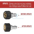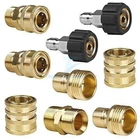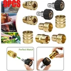 Product Description 9X Pressure Washer Adapter Set Quick Disconnect Kit M22 Swivel to 3/8'' Connect ATTENTION : M22 14 swivel fitting has 14mm inside diameter. If washer needs 15mm, using wrong may cause leakage. NOT FIT electric pressure washer of Sun Joe, Campbell, MI-T-M, AR Blue, Stanley, Cleanforce, Simoniz. 8pcs universal Pressure Washer Adapter Set, 4 kinds of couplers includes: Metric M22-14 swivel female + 3/8 inch plug, 3/8 inch quick disconnect + M22 male, 3/4 inch female + 1/2 inch quick connect, 1/2 inch plug+ 3/4 inch male. Two Quick Connector Sets connect water of pump to pressure washer hose, or connect pressure washer hose to . The other two Quick Connect kits converts 3/4" threads to quick release fittings, connecting all 3/4" standard garden hose to water inlet of power washer pump. High replacement couplers provide secure and quick fittings, easy to connect and disconnect. Max. Pressure is up to 5000 PSI. Pressure Washer Adapter Set will make your washing work more efficiently.If you have any questions, please feel free to contact us. Specification: 4 kinds of couplers includes: Metric M22-14 swivel female + 3/8" plug 3/8" quick disconnect + M22 male 3/4" female + 1/2" quick connect 1/2" plug+ 3/4" male Application: Two Quick Connector Sets connect water of pump to pressure washer hose and connect pressure washer hose to . The other two Quick Connect Kits converts 3/4’’ threads to quick release fittings, connecting all 3/4"" standard garden hose to water inlet of power washer pump. High replacement couplers provide secure and quick fittings, easy to connect and disconnect. Max. Pressure is up to 5000 PSI. WARNING: Serious injury may come from high pressure discharge produced by pressure washers. Please keep out of the reach of human body. What's included: 2 x Pressure Washer Couplers, M22-14 swivel female + 3/8" plug 2 x Pressure Washer Couplers, 3/8" quick disconnect + M22 male 2 x Pressure Washer Couplers, 3/4" female + 1/2" quick connect 2 x Pressure Washer Couplers, 1/2" plug+ 3/4" male 1 x Pressure Washer Coupler About Us Payment Shipping Returns Contact Us 1. Unless specified otherwise, all our products are IN STOCK and are shipped from USA Local warehouse - Not Overseas! 2. We provide a 30 day Satisfaction Guarantee or your money back (provided items are in the same new and resaleable condition.) 3. We have a PayPal Verified Business Account, please buy with Confidence! 4. Every item will be tesrted before send.We know our products well and if we don't have the answers we will do our best to find them for you! 5. Our friendly team look forward to serving you! Your satisfaction is our No.1 Priority We will do our best to satisfacy you. 1.Paypal, Credit Card, G Pay etc, many payment way is accepted. 2.Please be sure your shipping address is correct before make a payment. 1.We will ship out the item within 1-3 business days after comfirming the payment, appreciate your patience. 2.If the items are broken on the way(we will check the orders clearly before we sent them),please contact us in 3 days you received it. We will send you a new one or refund your payment. 1.We stand behind every buyer.Items can be returned for exchange or refund within 30 days. 2.Please contact us when you have any confusion of our item, we will solve the trouble for you as soon as possible. 1.This is professional Seller.We will reply your message within 24 hours. 2.Please contact us whenever you have any question about the item. We will deal with it as soon as possible. 3. If you are unhappy with the item or our service,please Contact Us before leave feedback,just give me a chance,thank you! About Us 1. Unless specified otherwise, all our products are IN STOCK and are shipped from USA Local warehouse - Not Overseas! 2. We provide a 30 day Satisfaction Guarantee or your money back (provided items are in the same new and resaleable condition.) 3. We have a PayPal Verified Business Account, please buy with Confidence! 4. Every item will be tesrted before send.We know our products well and if we don't have the answers we will do our best to find them for you! 5. Our friendly team look forward to serving you! Your satisfaction is our No.1 Priority We will do our best to satisfacy you. Payment 1.Paypal, Credit Card, G Pay etc, many payment way is accepted. 2.Please be sure your shipping address is correct before make a payment. Shipping 1.We will ship out the item within 1-3 business days after comfirming the payment, appreciate your patience. 2.If the items are broken on the way(we will check the orders clearly before we sent them),please contact us in 3 days you received it. We will send you a new one or refund your payment. Returns 1.We stand behind every buyer.Items can be returned for exchange or refund within 30 days. 2.Please contact us when you have any confusion of our item, we will solve the trouble for you as soon as possible. Contact Us 1.This is professional Seller.We will reply your message within 24 hours. 2.Please contact us whenever you have any question about the item. We will deal with it as soon as possible. 3. If you are unhappy with the item or our service,please Contact Us before leave feedback,just give me a chance,thank you! You may also like 65W USB C Type C for Acer Chromebook Lenovo/HP/Asus/Samsung Power Laptop Charger 8.99 USD Free shipping Titanium Cutting Board Double-Sided Titanium Cutting Boards for Kitchen Camping 17.99 USD 22.59 USD Free shipping 20% off 3 Head 50000LM LED Solar Lights Outdoor Waterproof Motion Sensor Security Lamp 13.99 USD Free shipping 5Pcs HSS Cobalt Hole Large Metal Step Drill Bit Set Titanium Cutter Cone 50 Size 9.39 USD 11.49 USD Free shipping 18% off 9PC ABS Socket Organizer 1/2 3/8 1/4 inch Drive Socket Rail Holders Wall Mount 17.57 USD 18.49 USD Free shipping 5% off 8"x12" Vacuum Sealer Bags Embossed Food Saver Magic Seal Storage 100-500pcs 13.4 USD 14.89 USD Free shipping 10% off powered by