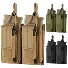 Product Description Features: 1. Double-Layer Holder New Design: New upgraded, it hold twice layer magazines, one layer to fasten rifle mags and one layer to fasten pistol mags; 2. Double compartments design keep your item in order and in reach, to keep your magazines not falling; 3. Hook & Loop fasten design, fast and easy to open the top and close. 4. Molle System: Molle webbing at the back can be attached to molle gears, including tactical vest/belt/backpack etc. 5. Package: Only 1 pouch, the other items such as magazine is not included. Specifications: Type: Tactical Molle Magazine Pouch Material: Durable Waterproof 1000D Nylon Color: Black/Khaki/Army Green Weight: 140g approx Type: Double Mag Pouch: 2+2 Mag Holder Size: 6.2*1.2*5.3inch Package Includes: 1 X Tactical Mag Pouch (Magazines are not included)