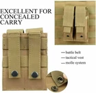 Product Desc ription : Features: 1. This pouch is made of high quality 600D nylon fabric. It is strong, durable and wear-resistant. It is also waterproof and anticorrosive. It will not fade even if it is not easy to rot in water. At the same time, it is comfortable and soft to handle. 2. The pouch is designed with a Molle system that can be loaded into vest, belt, backpack and other tools to use, carry a variety of ways, is a multi-functional outdoor tool. 3. This pouch has a hook and loop fastener and double close design, can effectively prevent falling objects, the bag has a separate layer, you can place some small items. 4. This pouch is widely used and can be used as a flashlight bag, spray bag and sundry bag, which brings great convenience to outdoor activities. 5. The design of this bag is compact, small, lightweight, easy to carry and easy to use. Specifica tions : 1. Material: 600D Nylon 2. Gender : Men, W omen, U nisex 3. Size: 14x1 0cm/5.51x3.94inch 4. Color: Black, G reen, Y ellow , M ulticolored 5. T heme: Sports 6. Sport Type: Hunting, C am ping, T raveling, C limbing 7. Weight: 78g/2.75oz 8. Fe a tures : Tear Re sistant , A djustable, M olle S ystem Package In cluded : 1x Dual Magazine Pouch