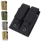 Features: 1. Pistol mag pouch can holds two double-stack or single stack pistol magazines in 9mm .40 and .45 caliber , etc. 2. Made of high quality military 600D nylon material, tear-resistant, wear-resistant. 3. The adjustable top hook-and-loop flap closure securely keep the mags in place. And a steel drain hole rivet in the bottom. 4. There are 2 buckle straps on the back allow you to add the military pistol pouch to belt, combat vest, tactical backpack, or other MOLLE compatible gear. 5. The tactical Pistol Magazine pouch provides optimal storage for most pistol magazines. It can also be used to store folding knives, multi-tools, flashlights, and other small essentials. Specification: Material: Nylon, Alloy Steel Color: Black Overall Dimensions: 14 x 10 cm / 5.5 x 3.9 " Weight: 75g Closure Type Buckle Package Include: 1 x MOLLE Double Magazine Pouch