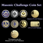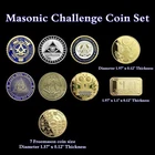 Item Details United States Masonic Challenge Coins Set of 9 High quality, exquisite made, antique brass attractive color finish Engraved a masonic pattern and symbols words Adhesive Backing for Easy Application, Each coin is packaged in an individual transparent case Perfect souvenir gift for A Brother Master Mason, Masonic coin collectors, excellent to collection on the challenge coin display case Freemason 9-Design Commemorative Coin – A Symbol of Masonic Principles, Brotherhood, and Enlightenment Celebrate the core values of Freemasonry with this 9-Design Commemorative Coin , featuring nine powerful Masonic symbols that embody the wisdom, brotherhood, and unity central to Masonic teachings. Crafted with precision, this coin is available in a variety of finishes, including gold , silver , and antique bronze , and comes in two sizes: 50mm and 40mm in diameter. Each coin is a timeless reminder of the principles that Freemasons hold dear. Why Choose the Freemason 9-Design Commemorative Coin? Symbolizes Key Masonic Values: The nine designs on the coin represent Freemasonry’s teachings of brotherhood, wisdom, and unity, making it a powerful symbol of your commitment to these principles. Premium Craftsmanship & Durability: Made from iron and finished in gold , silver , or antique bronze , this coin offers exceptional quality and longevity. Perfect for Freemasons & Collectors: Ideal for anyone looking to display their affiliation with Freemasonry or add a unique, meaningful item to their collection. Amazing Treasure Still wondering what to add in a collection? A special and long-last memory gift? Or the connection between you and your most important one. You can always find your own treasure here. Packing Each coin will be packed up individually with a plastic case suit in opp bag. Shipping We'll start shipping as soon as possible within 2 business day normally. Tracking will be available after. Feedback We try to make sure ALL customers are satisfied with our services, if you do, a POSITIVE feedback is appreciated, thank you very much. And we always leaving a positive one for customer when item is delivered successfully. Contact Us Feel free to contact us at any time, we're happy to help. You can reach us by eBay or E-mail. Have a nice day!