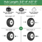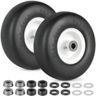 【SPECIFICATION】9x3.50-4" Tire. Tire Diameter: 9.2", Tire Width: 3.5", Hub Length: 3.5"-4”-4.5”-5” Centered Hub, Bushing size: 3/4" or 5/8”, Rim Diameter: 4", Load Capacity: 300 lbs. Not for highway use 【EXTRA ADAPTER KIT】9x3.50-4" flat free tire is pre-assembled with 3.5" centered hub and 3/4" bushing. Comes with four 5/8" bushings, four 1/2" and 1/4" Wide Wheel Nylon Spacers, four steel washes, which can greatly expand its applicability 【HIGH QUALITY】Our flat free tire is are made of solid, lightweight polyurethane foam, smooth tread. Our Flat Free Tires have the bounce and cushion of an air-filled tire with the benefit of no flats. No tubes; no re-filling with air; non-marking, no more hassle 【NOTE】Fits many zero-turn lawnmowers. Please check your existing tire sidewall for tire, hub and bearing size to ensure proper fit. Please make sure you don’t overload and the tires are not parked or sat for long period of time, otherwise they can develop a flat spot on the tread and your cart will be bumpy 【WIDE APPLICATION】This lawn mower tire is widely used on wheelbarrows, garden carts, hand trucks, pressure washers, generators, air compressors, lawn mowers and other types of outdoor power equipment