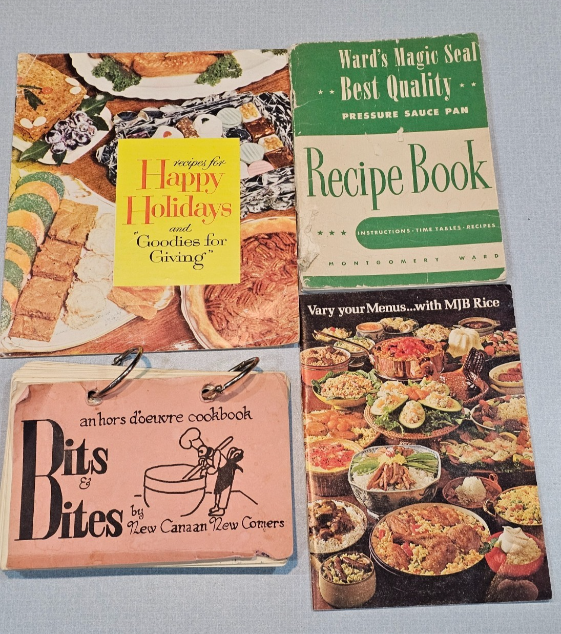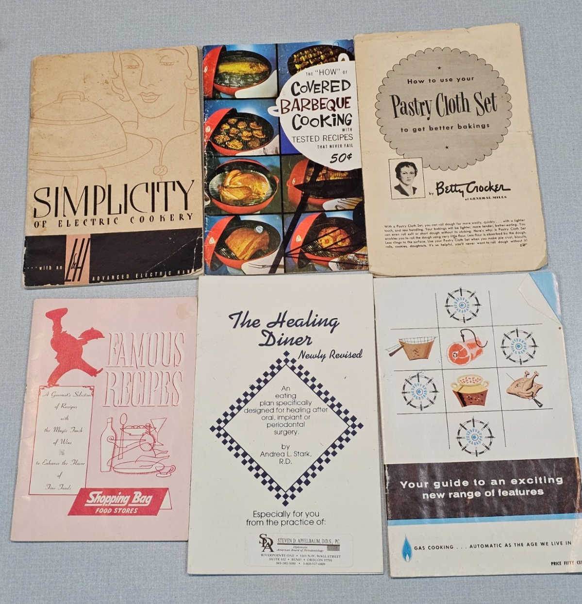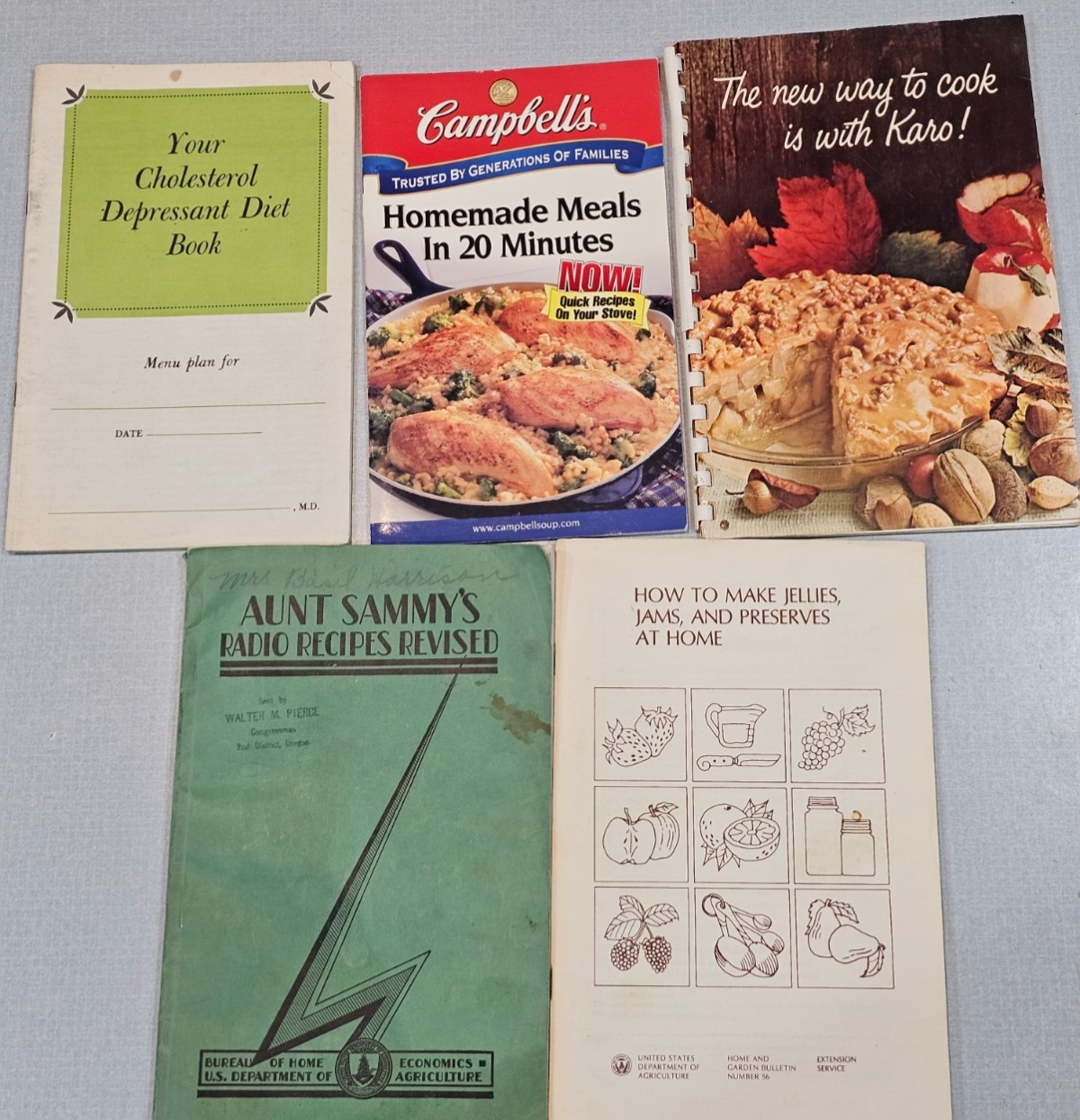 Bits and Bites , a collection of favorite hors d'oeuvre recipes. (date unknown) Montgomery Ward Pressure Saucepan Recipe Book, Instructions, timetables, and recipes (1947) MJB Rice , 54 specially selected MJB rice recipes (date unknown) Famous Recipes (with wine) , A gourmet's selection of recipes with the magic touch of wine (1950's) Recipes for Happy Holidays & Goodies for Giving (1950's) Simplicity of Electric Cookery with an L&H Advanced Electric Range, instructions & recipes(1940's) Weber Covered Barbeque Cooking , with tested recipes that never fail (1960's) Betty Crocker Baking , how to use your pastry cloth set to get better baking's (1940s) Gas Cooking Combine and Cook , gas range cooking (1958) The (after oral surgery) Healing Diner, an eating plan designed for healing after oral surgery (1997) Your Cholesterol Depressant Diet Book (1961) Campbells , Homemade meals in 20 minutes (2000) Karo, the new way to cook with Karo! (1960's) Aunt Sammy's Radio Recipes Revised (1931) How to Make Jellies, Jams, and Preserves at Home (1982) Canning Fruits (1989) Paulina's 5th-8th Graders and upper country cooks (1977) Make it with Salt , Leslie Salt Co. How to make pickles, relishes, sauerkraut and how to salt and brine vegetables (1940's) Sunbeam Controlled Heat Automatic Frypan , instructions & recipes (1953) Betty Crocker's Pie Parade (1957) Fleischmann's New Treasury of Yest Baking (1968) Most are in good vintage condition, but a couple of books have tears and they show signs of wear as they are old. Please Read Before Buying: · All items are described and photographed to the best of my ability, including any known flaws, defects, or wear. Please review all photos and description details carefully before purchasing, as they represent the exact condition of the item. · Photos are considered part of the description — please zoom in to review them carefully before purchasing. · Item measurements, sizing, or fit are the buyer’s responsibility to confirm before purchase. · Color may vary slightly due to lighting, camera, or screen differences. · This item is sold as described in the listing. Returns are only accepted if the item significantly differs from the description, per eBay’s Money Back Guarantee policy. · The listing price reflects the condition, and all known defects are disclosed. · I cannot guarantee the item’s performance or longevity after purchase, as usage and care are beyond my control. · Only the items shown in the photos are included—no additional accessories, manuals, or boxes unless explicitly stated. · If you have any questions about the item’s condition, size, or features, please ask before placing your order. · As per eBay policy, buyers may still open cases under eBay’s Money Back Guarantee if the item significantly differs from the description. Buyer Advisory for Vintage Items and Antiques: · Please note that the information provided in this listing may be incomplete or inaccurate. It is recommended that you use the details as a starting point to form your own judgment. I appreciate any additional information that could enhance or clarify the history of the objects. · Given the uncertainty surrounding this piece, we advise potential buyers to proceed with caution. The purchase decision rests entirely with you, and you assume any associated risks. · We encourage interested parties to conduct their own research or seek expert opinion before making a purchase decision.