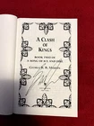 A Signed Hardcover Set of four George R.R. Martin’s A Song of Ice and Fire Series – Including the Illustrated Edition of A Game of Thrones This is a remarkable set of four hardcover books from George R.R. Martin's legendary A Song of Ice and Fire series. All books are hand-signed by the author, making them a unique treasure for collectors and fans alike. What’s Included: A Game of Thrones (Illustrated Edition, 2016) – A special edition of the book that started it all, featuring stunning artwork throughout that brings the world of Westeros to life. Signed by Martin, this edition elevates the experience of reading the epic tale that introduced us to the Iron Throne, noble houses, and unforgettable characters. A Clash of Kings (Hardcover) – The stakes rise as civil war tears through the Seven Kingdoms, and new contenders emerge to challenge for power. A signed copy of the gripping second volume of the saga. A Storm of Swords (Hardcover) – Known for its shocking twists and major character arcs, this third volume is split into two parts ( Steel and Snow and Blood and Gold ) and is often considered the most thrilling of the series. A beautifully signed hardcover for any collection. A Feast for Crows (Hardcover) – After the devastating War of the Five Kings, Westeros is fractured. This intricately woven tale of power and survival is captured in this signed fourth installment. Key Details: Condition : All books are in excellent condition, with their original dust jackets intact and minimal shelf wear. Signatures : Personally signed by George R.R. Martin, providing authentication for collectors. Why This Set Stands Out: Illustrated Edition of A Game of Thrones : A visually stunning version of the original masterpiece. Collector’s Dream : A signed set like this is a rare find and a valuable addition to any library. Perfect for fans of epic fantasy, collectors of signed editions, or anyone looking to own a piece of modern literary history. Don’t miss this chance to add this exceptional set to your collection!