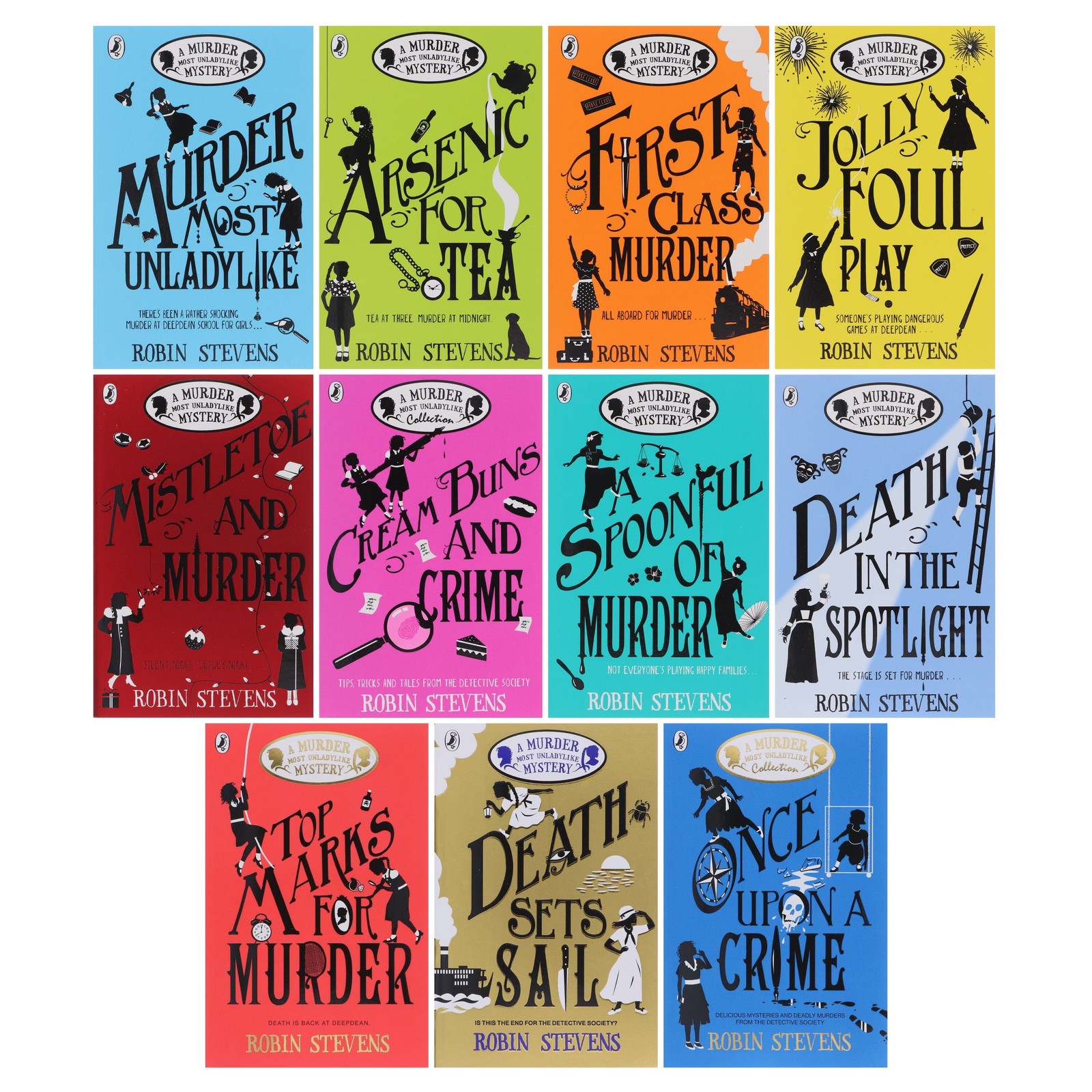Powered by Frooition Home About Feedback Newsletter Contact Children's Ages (0 - 5) Other Children's Ages (5 - 7) Children's Ages (7 - 9) Children's Ages (9 - 14) Young Adult Fiction Non-Fiction Clearance Sale Welcome to books2door ebay shop We want to encourage a love of reading in all children. That's why we have been offering exceptional books at affordable prices since 2004. We look forward to being a part of your next story. A Murder Most Unladylike By Robin Stevens 11 Books Collection Set - Ages 9+ - PB Item Description Summary In a fantastic collection for curious young minds, this Eleven-book set by Robin Stevens brings together murder and mystery that will engross readers in the plots. Much like the iconic Agatha Christie stories, which serve as inspiration, the A Murder Most Unladylike Mystery Collection provides sheer entertainment, with clever twists and turns that keep readers guessing every step of the way. Aimed at a younger generation, this is a modern take on murder mysteries, with great adventure and themes of friendship. Each book provides a fresh mystery for the friends to crack, full of twists, turns and red herrings. The girls solve crimes everywhere, from the classroom to the theatre, becoming firm friends and overcoming the challenges of school life together, despite their different backgrounds. With plenty of clues along the way, the race is on for readers to use their best detective skills and discover who?s responsible. The great news is that you can read them in any order, but we recommend starting at the very beginning to get to know all the characters. If you love the board game Cluedo or you?re a big fan of the hit mystery TV shows like Sherlock , give these books a try ? they are amongst the best murder mystery books around! This set is a fantastic option for reluctant readers who enjoy problem-solving or thick plot twists to keep them engaged. Without a doubt, this series will grip readers from start to finish! About the author Robin Stevens was born in California and moved to Oxford when she was three. Previously working as an editor, she has an MA in crime fiction and has written fifteen books. She has written nine novels in the A Murder Most Unladylike series and two volumes of short stories. Her forthcoming book, The Ministry of Unladylike Activity , is the first in a new series set in the same world. She co-founded children?s publisher Knights Of with her husband David, which aims to help bring more diverse books into the world. Titles in this set: Murder Most Unladylike Arsenic For Tea First Class Murder Jolly Foul Play Mistletoe and Murder Cream Buns And Crime A Spoonful of Murder Death in the Spotlight Top Marks For Murder Death Sets Sail Once Upon A Crime Description: Murder Most Unladylike At Deapdean School for Girls, Daisy Wells and Hazel Wong have set up their own detective agency. But they are struggling to find any real crimes to investigate... Then Hazel discovers the Science Mistress, Miss Bell, lying dead in the Gym. To add to the mystery, when she and Daisy return five minutes later, the body has disappeared. Now Hazel and Daisy not only have a murder to solve: they have to prove one happened in the first place. Determined to get to the bottom of the crime before the killer strikes again, Hazel and Daisy must hunt for evidence, spy on their suspects and use all the cunning and intuition they can muster. But will they succeed? And can their friendship stand the test? Arsenic For Tea With wild storms preventing anyone from leaving, or the police from arriving, Fallingford suddenly feels like a very dangerous place to be. Not a single person present is what they seem - and everyone has a secret or two. And when someone very close to Daisy looks suspicious, the Detective Society must do everything they can to reveal the truth... no matter the consequences. First Class Murder Daisy Wells and Hazel Wong are taking a holiday on the world-famous Orient Express - and it?s clear that each of their fellow first-class passengers has something to hide. Even more intriguing: there is rumour of a spy in their midst. Jolly Foul Play As they return to Deepdean for a new school term, Daisy Wells and Hazel Wong are faced with some big changes. For one, there's a new Head Girl, Elizabeth Hurst, and a team of Prefects- and these bullying Big Girls are certainly not good eggs. Then, after the fireworks display on Bonfire Night, Elizabeth is found - murdered. Many girls at Deepdean had reason to hate Elizabeth, but who might have committed such foul play? Could the murder be linked to the secrets and scandals, scribbled on scraps of paper, that are suddenly appearing around the school? And with their own friendship falling to pieces, how will Daisy and Hazel solve this mystery? Mistletoe and Murder It?s Christmas, and the snow is falling in Cambridge, where the detective duo Daisy Wells and Hazel Wong are spending the festive period. But Hazel?s hopes of relaxing amongst the beautiful spires, cosy libraries and inviting tea-rooms are dashed by the danger lurking in the dark stairwells of Maudlin College. Two days before Christmas, there is a terrible accident. At least, it appears to be an accident - until the Detective Society look a little closer, and realise a murder has taken place. Cream Buns And Crime Daisy Wells and Hazel Wong are famous for the murder cases they have solved - but there are many other mysteries in the pages of Hazel?s casebook. From the macabre Case of the Deepdean Vampire to the baffling Case of the Blue Violet, and their very first case of all: the Case of Lavinia?s Missing Tie. A Spoonful of Murder When Hazel Wong?s beloved grandfather passes away, Daisy Wells is all too happy to accompany her friend (and Detective Society Vice President) to Hazel?s family estate in beautiful, bustling Hong Kong. But when they arrive they discover something they didn?t expect: there?s a new member of the Wong family. Daisy and Hazel think baby Teddy