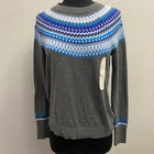 $ 121.44JCrew Sweater Womens Small Navy Fair Isle Johnny Collar Boucle Yarn Alpaca Wool