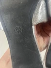 $ 13.2Tory Burch 9.5M Black Tumbled Leather Sally 2 Wedge Pump Silver Logo Peep Toe