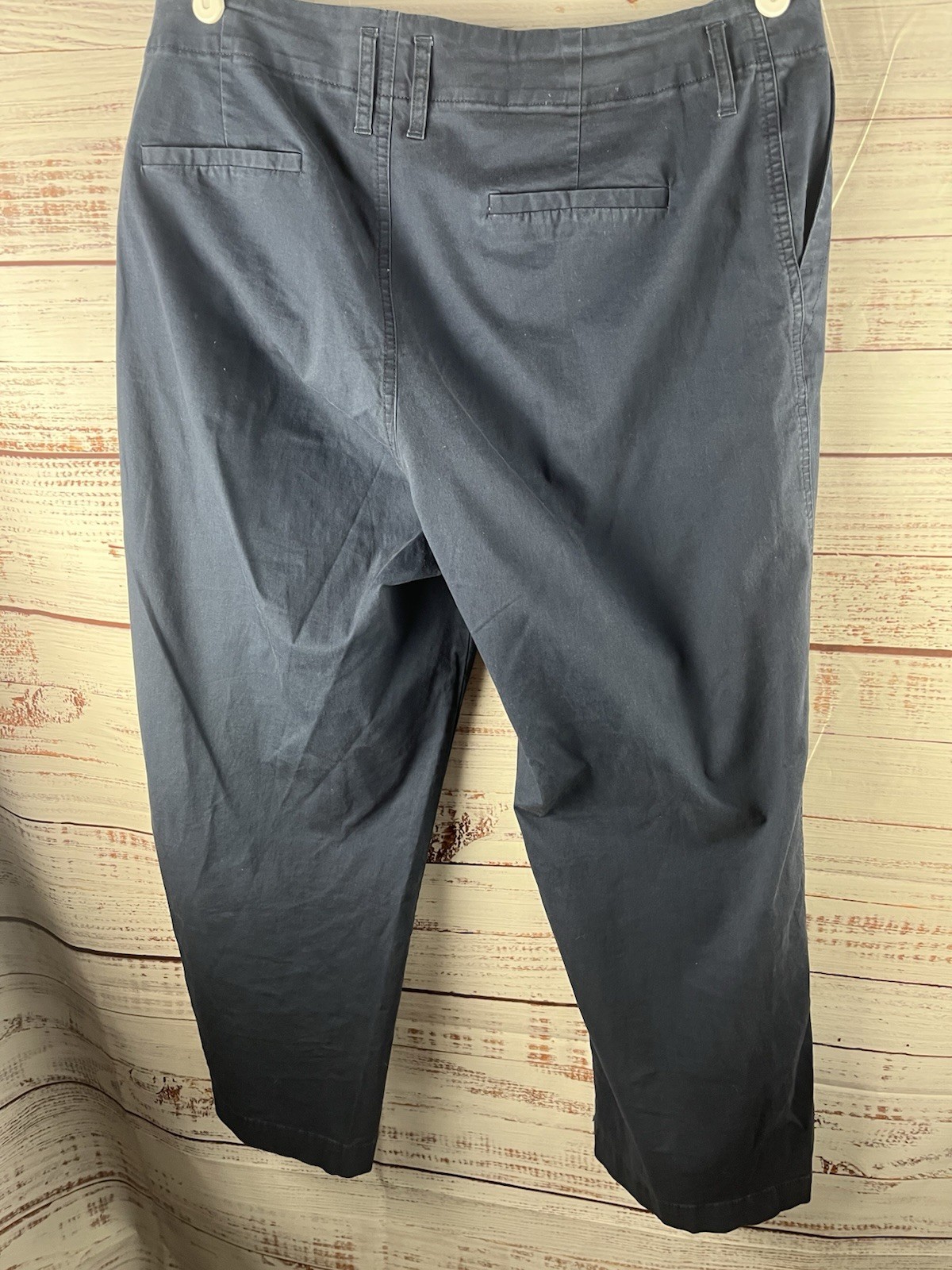 These A New Day Stretch Chino Pants in navy blue size 12 are a versatile addition to any woman's wardrobe. Made from a comfortable cotton blend material, these pants feature a solid pattern with a zip and button closure. The high rise and flat front give a chic and polished look, while the straight leg and 25 inch inseam offer a flattering fit. With a stretch feature, these pants are suitable for year-round wear and can be easily machine washed for convenience. Perfect for both casual and dressier occasions, these pants are a must-have for any fashion-forward woman.