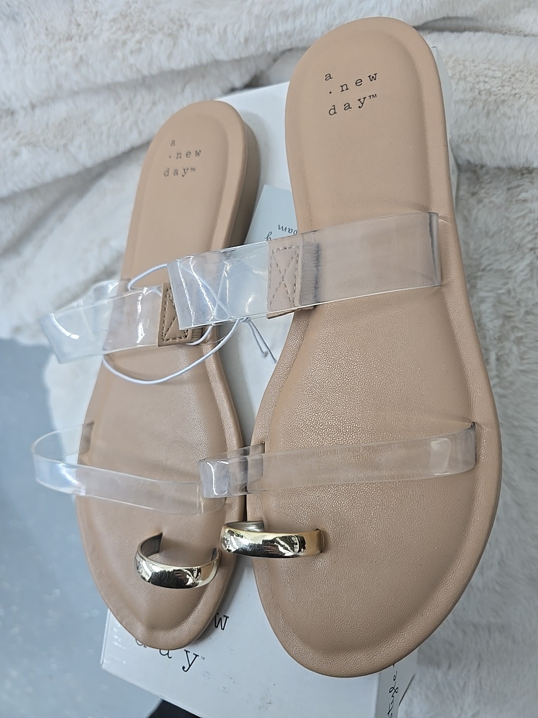 A New Day Women's Honey Metal Toe Loop Double Band Slide Sandals Tan Brown 6 1/2