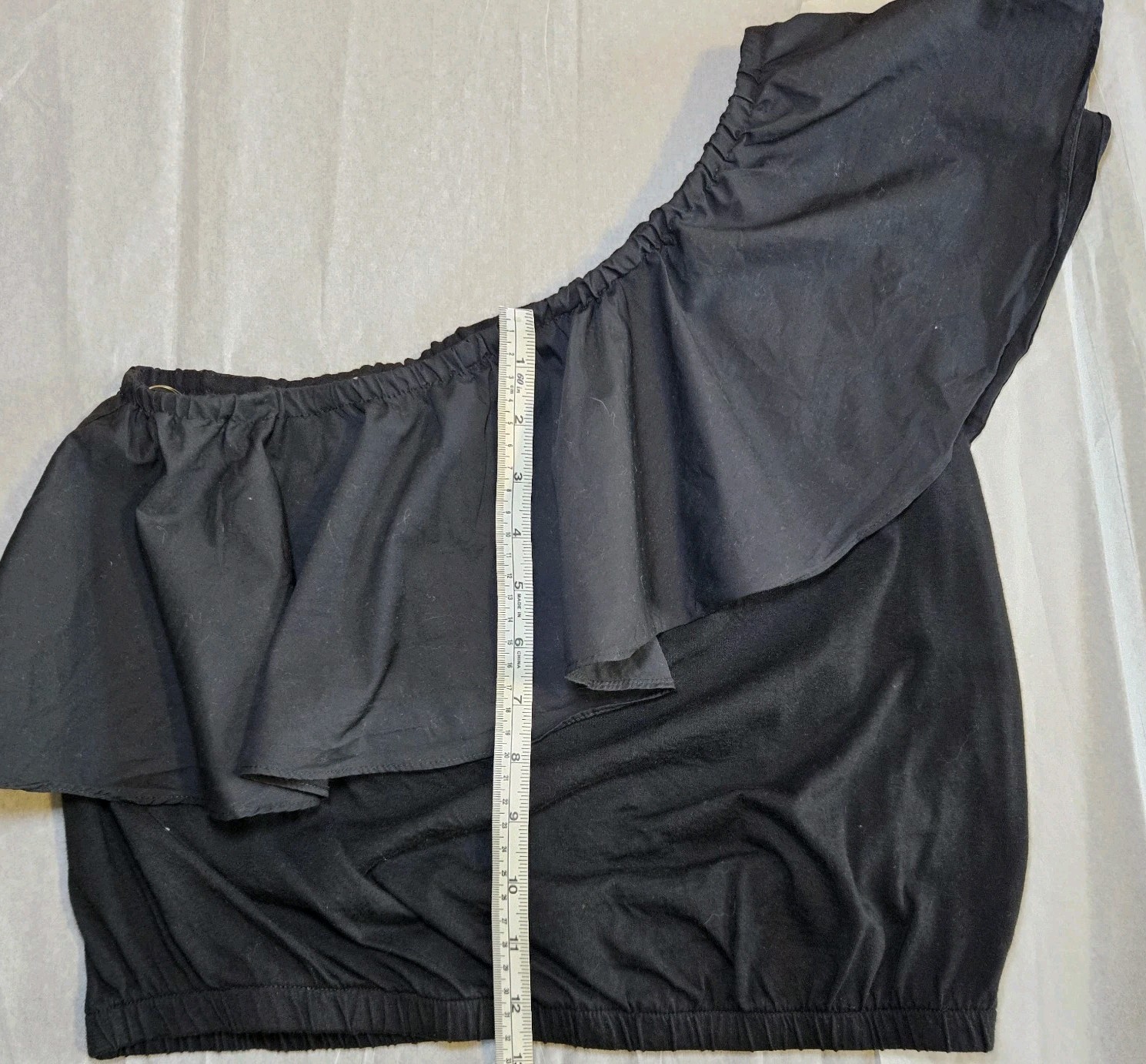 A New Day Women's Top Crop Ruffle One Off Shoulder Black Size XS