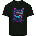 A Retrowave Husky Dog Mens Cotton T-Shirt Tee Top