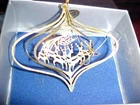 A MINI GOLD PLATED BRASS ORNAMENT WITH REINDEER. ORNAMENT NEVER USED. MEASURES 3 IN LONG. 2 1/4 IN TALL. MADE BY CHRISTMAS FANTASY, COMES IN BOX THANKS FOR LOOKING 72220