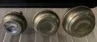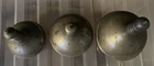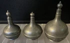 A Trio Of Middle Eastern Islamic Metal Perfume Bottles - Marked OGEE. Two are stamped OGEE on the bottom and third is unmarked. The tops unscrew and all work fine, no problem with the threads. They are quite tarnished but I personally prefer them that way to see the age although they would polish nicely. They have a few little dents here and there. Tallest is 17cm, the other two are approx 14cm tall.