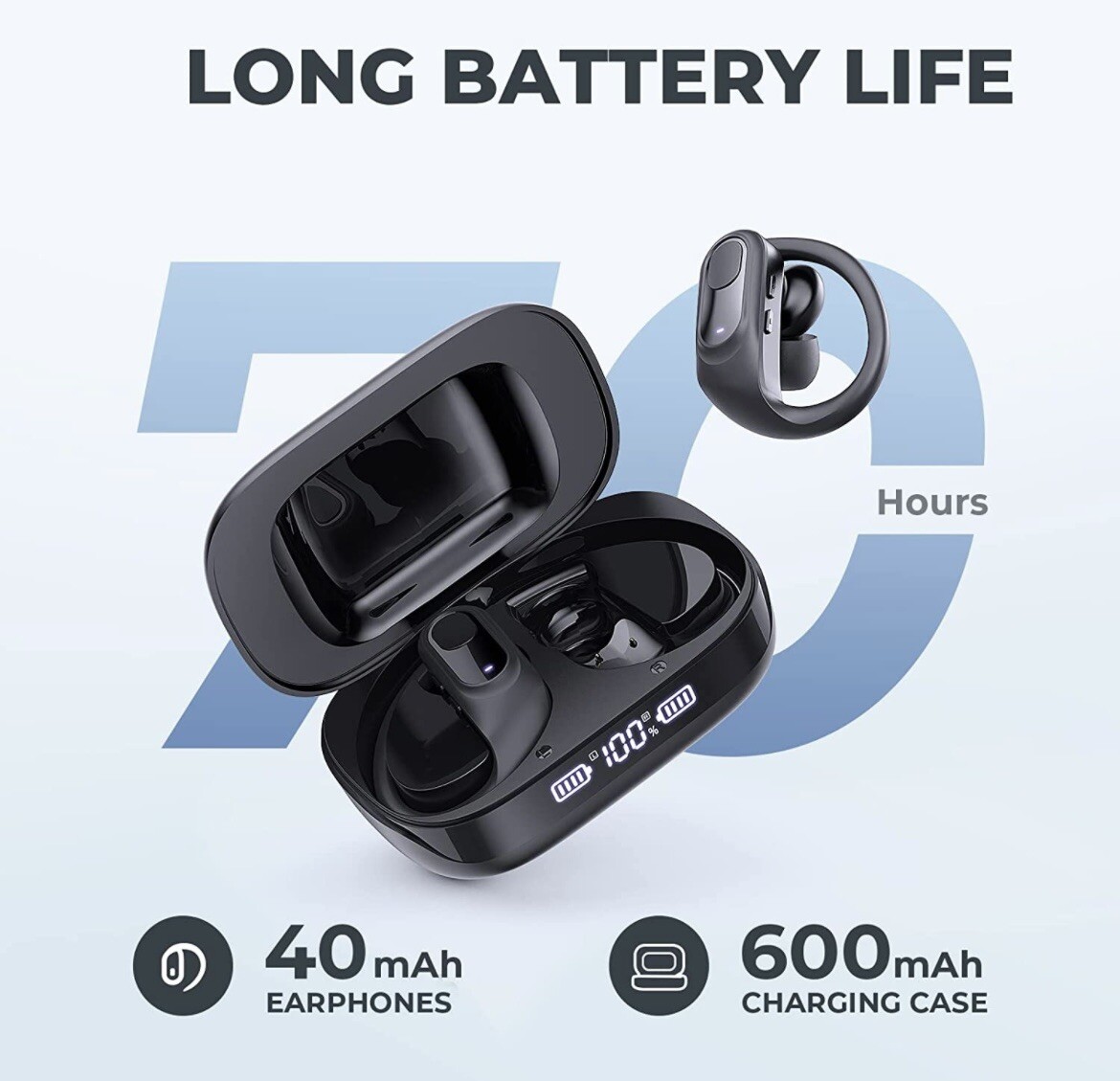 Wireless Bluetooth Earbuds A1. Wireless Earbuds 70Hrs Playtime Bluetooth 5.3 Ear buds with Mic Wireless Charging Case LED Display Headphones IPX7 Waterproof Over Ear Earhooks Headset Sport Earphones Wireless Bluetooth Earbuds