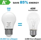 【Compact Size】 Featuring a compact A15 design and a standard E26 base, this bulb is ideally suited for a wide range of fixtures, including ceiling fans, pendant lights, and table lamps, offering a versatile and elegant lighting solution. 【Superior Energy Efficiency】 Upgrade your lighting with our LED bulbs that significantly reduce energy usage, providing a more efficient solution than both traditional incandescent and fluorescent bulbs. 【Prolonged Lifespan】 Benefit from an exceptionally long lifespan with our bulbs, which are designed to minimize the need for frequent replacements, ensuring enduring brilliance and reliability. 【Enhanced Color Accuracy】 Illuminate your surroundings with our high CRI of 82 bulbs, which enhance the true colors of your view. This superior color accuracy brings a vibrant and natural quality to every space. 【Optimal Eye Comfort】 Our bulbs are engineered to provide a stable, flicker-free glow, safeguarding your eyes from strain and creating a more comfortable illumination for reading or work. 【NOTE】 These A15 LED Bulbs are Not dimmable; please DO NOT use them with a dimmer switch. Additionally, it is not recommended to use them in a refrigerator or freezer. Product Description Elegance, Efficiency, and Endurance ORALUCE A15 LED Bulb - Brilliance Redefined Discover the art of illumination with our exquisite A15 LED bulb. Revel in its radiant glow, expertly crafted for optimal brightness and energy efficiency. With unparalleled longevity, this masterpiece redefines the essence of lighting, transcending the mundane to embrace the extraordinary. The video showcases the product in use. The video guides you through product setup. The video compares multiple products. The video shows the product being unpacked. Quality Illumination Dependable Craftsmanship, Notable Excellence A fine example of quality illumination. Thoughtfully constructed with a reliable aluminum substrate, durable LED chips, and robust materials, our bulb offers noteworthy performance and longevity. NO Flicker Non-Flickering led bulbs can bring NO strain to your eyes and protect eyes greatly. Higher CRI With high color rendering index(82+), every thing's color in you home would always remain true and natural. Selectable Color Temperature PRODUCT SPECIFICATION Shape G45/A15 Base 26mm Power Consumption 5 Watts Equivalency 40 Watts Color Rendering Index 82+ Luminous flux 450lm Color Warm White 3000K Package 6 Pieces / box ATTENTION 1. Attention to Base Size: Please be aware that this product features a 12mm base diameter, not the standard 26mm. Ensure you have the correct size before purchasing to avoid any inconvenience. 2.For making sure it is the right product you want, please read the products specifications before buying. 3.For avoiding the risk of electric shock, please make sure electricity is cut off during installation. 4.It is NOT DIMMABLE, so please DO NOT use it with any dimmer switch or dimmable socket. PRODUCT COMPARISON Add to Cart Add to Cart Add to Cart Add to Cart Add to Cart Customer Reviews 4.6 out of 5 stars 207 4.3 out of 5 stars 55 4.5 out of 5 stars 1,445 4.2 out of 5 stars 388 4.1 out of 5 stars 417 Price $9.99 $ 9 . 99 $9.99 $ 9 . 99 $9.99 $ 9 . 99 $12.99 $ 12 . 99 $13.99 $ 13 . 99 Dimmable or not Not dimmable Not dimmable Not dimmable Not dimmable Not dimmable Base size 26mm 12mm 12mm 26mm 26mm Equivalent to incandescent 40 watts 40 watts 40 watts 60 watts 100 watts Color temperature 3000K Warm White 3000K Warm White 3000K Warm White 3000K Warm White 3000K Warm White Brightness 450lm 450lm 450lm 900lm 1200lm Package 6 Pack 6 Pack 6 Pack 6 Pack 6 Pack