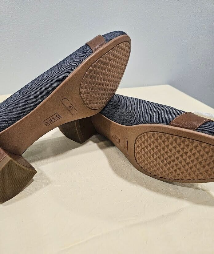 Blue denim pumps from Aerosoles A2. Slip-on shoes almond toe shape approximately 2-inch heel. Suede and buckle accents with Heel Rest technology. Size 9.5, with a medium width. Ships from a smoke free home! Please see all photos for exact item condition. Thank you for checking out my store! All items are shipped within 1 or 2 business days. Make a bundle to save on shipping cost.