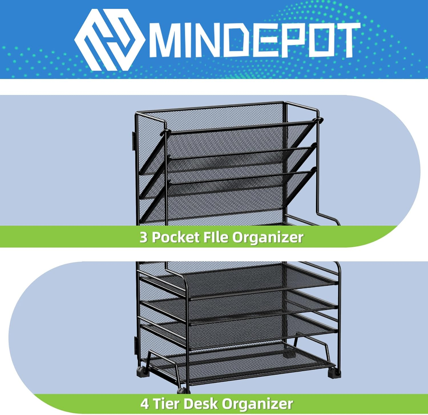 Store New Arrivals Add to Favorite View Feedback Desk Paper Organizer Tray, Desktop File Folder Sorter Holder for A4 Letter-Size Paper Document Organization for Office Home School Classroom (4+3 File Organizer) Description Item model number DFO3+4 Style Modern Number of Items 1 Pattern Solid Country of Origin China Is Oven Safe No Batteries Included? No Usage Paper, File holder Batteries Required? No Finish Painted Brand MINDEPOT Material Metal Finish Type Painted Manufacturer MINDEPOT Is Dishwasher Safe No Item Weight 5.1 pounds Occasion Anniversary, Birthday Special Features Foldable Special Feature Foldable Part Number DFO3+4 Mounting Type Tabletop Mount Color Black Shape Rectangular Recommended Uses For Product Letter, File Folder, Book, Document Tray Type Tiered Tray Included Components Desk File Organizer, Screws.Screwdriver Product Dimensions 13.19"L x 9.17"W x 17.24"H Product Care Instructions Wipe with Dry Cloth Size 13.2" x 9.2" x 17.2" 【All-in-one Desk Organizer】The desk organizer has 4 tier horizontal paper tray organizer, 3 pocket upright file holder, which can utilize horizontal and vertical space well and meet your different needs 【Sturdy and Durable】This desktop organizer is designed with a reinforced and thickened structure for enhanced durability and longevity 【Easy to Assemble】Just a few minutes, you can install the paper tray organizer easily. The rubber feet are actually soft enough to keep it from sliding around on your desk 【Wide Use】The desk file organizer can store all papers/books/files and office supplies, such as pens, pencils, staples, paper clips so that you can reach out for files and desk items in use at the moment Size:13.19 "W x9.17 "D x 17.24 "H The MINDEPOT 4-Tier Paper Organizer is a versatile and space-saving solution for organizing your office accessories and school supplies. Let's explore the functionality of each component before discussing the overall features 1. 4-Tier Desk Organizer: This component features four tiers of paper trays. These trays are designed to hold and organize your files, paperwork, and documents. The tiered design ensures easy visibility and quick access to your important files, reducing time wasted searching for misplaced papers 2. 3 Pockets File Holder: The organizer also includes three pockets file holders. These holders are perfect for storing notes, memos, and other important documents that require immediate attention. By having designated pockets, you can quickly find and access your most urgent files and keep your desktop clutter-free 3. 1 Drawer: The integrated drawer offers a secure place to store valuable items or small office supplies. You can use it to keep confidential documents, keys, or even personal belongings. This drawer helps to keep your desk clean and organized, eliminating unnecessary clutter 4. 1 Pen Holder: The two pen holders provide a dedicated space to keep your writing utensils handy and prevent them from getting lost. With easy access to pens and pencils, you can quickly jot down notes or complete tasks without searching for a writing instrument Now, let's discuss the overall functionality of the MINDEPOT 4-Tier Paper Organizer. This product offers a comprehensive solution for organizing your office essentials while effectively utilizing limited desk space. Its multi-tiered design, combined with the three pockets file holder, enables efficient organization and easy access to your files and documents Additionally, the integrated drawer provides secure storage for valuable items, ensuring they are always within reach but safely tucked away. The two pen holders eliminate the frustration of searching for a pen, allowing you to maintain focus and be more productive Overall, the MINDEPOT 4-Tier Paper Organizer is a multifunctional and space-saving tool that streamlines your workspace, increases efficiency, and reduces clutter. It is ideal for offices, schools, and even home offices where organization is essential for productivity ABOUT US We offer the best prices around on high quality products. Our E-store includes media such as books, movies, music and games while offering electronics, toys, sporting apparel, clothing, tools, general home, garden items and more. SHIPPING We are always working hard to ensure your package arrives as soon as possible. Please understand that some factors like weather, high postal traffic, and the performance of shipping companies are outside of our control. We offer free shipping to the lower 48 states and ship within 2 business days of payment, usually sooner. We do not accept P.O. Boxes. Please provide a physical address. RETURNS We offer a 30-Day Return Policy on items which you are not completely satisfied with. You have the option for a full-refund or an exchange of the item. No returns are available on items shipped outside of the USA. PAYMENT We accept PayPal. CONTACT US This page content is yet to come Please ad us to your favorite seller and visit again later Thank You