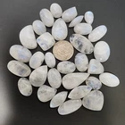 This wholesale lot of 31 natural rainbow moonstone cabochons features a mix of shapes and sizes sourced from Sri Lanka. The translucent gemstones showcase a beautiful bi-color/multicolor hue, with each piece measuring approximately 20-40mm in length and 15-30mm in width. Known for their excellent cut grade and polished finish, these moonstones are perfect for jewelry making and add a touch of elegance to any design. Made with natural gemstone creation and not enhanced, these cabochons have a clarity grade that is eye clean, ensuring a high-quality product for your crafting projects.