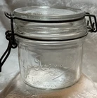 Le Parfait Super fruit jar. Glass lid and locking wire clamp. The glass lid Le Parfait “super”, base made in France. The jar and lid are embossed all over. Please see pictures for items condition and description. As is only we do not accept returns Thank you and happy bidding lil Debbie