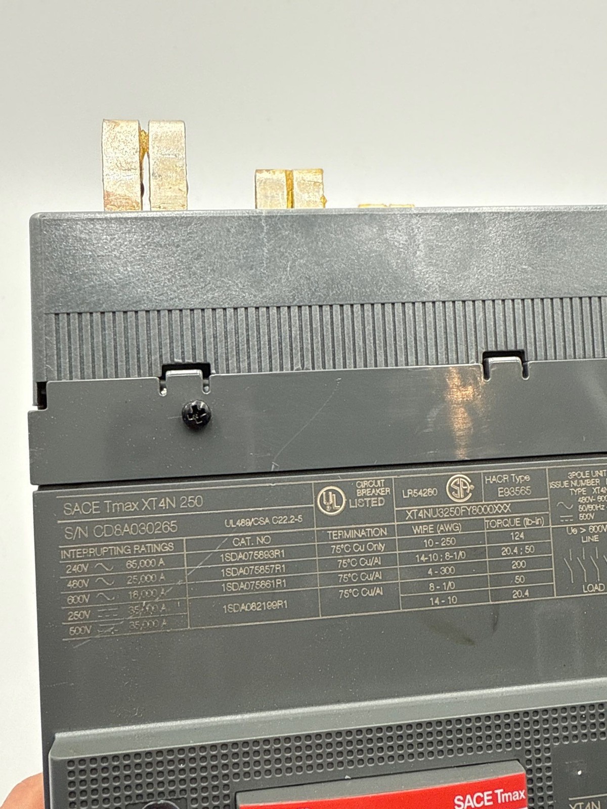 ABB XT4NU3250FY8000XXX Circuit Breaker 250A 3P 600V SACE Tmax XT4N 250 Item pictured will be exact item you receive unless multiple quantities listed. Please review all pictures carefully. Please ask any questions prior to purchase. Fast Shipping: We strive to ship all orders same day if placed before 3:00 PM EST. If you need next-day or other expediting shipping please contact us for a shipping quote. Warehouse location: A05S30