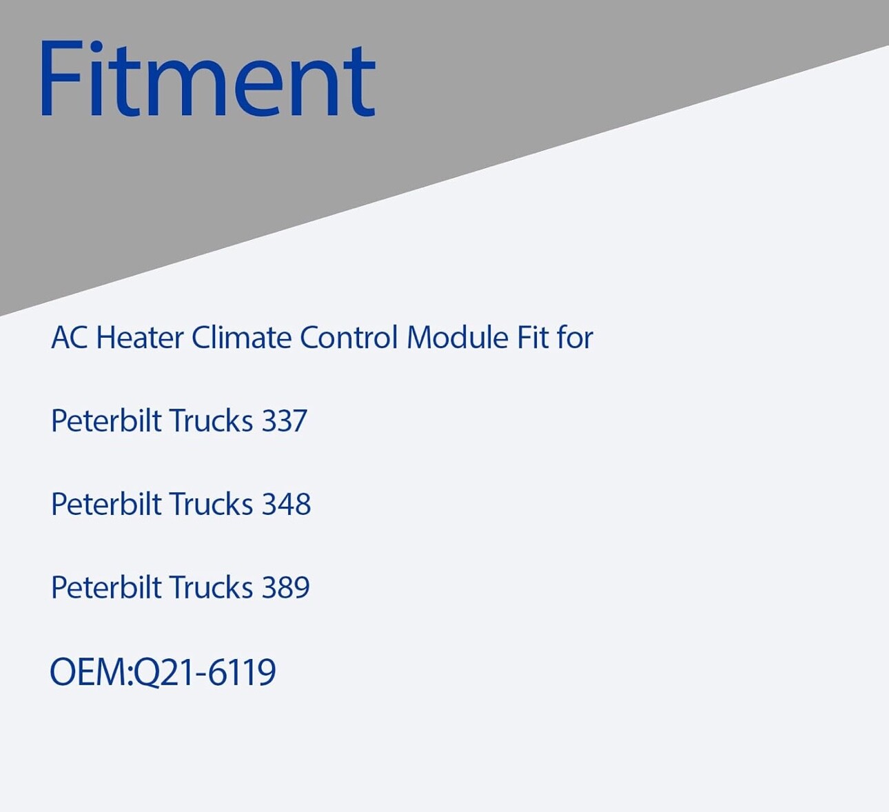 #2109 AC Heater Climate Control Module, HVAC Climate Control,Air Conditioning Heater Control Switch Panel Fit for Peterbilt Trucks 337 348 389,OEM Q21-6119 Operation Mode manual Current Rating 30 Milliamps Operating Voltage 12 Volts Contact Type Normally Open Connector Type Plug In Brand JBphxior COMPATIBLE MODELS-AC Heater Climate Control Module , Air Conditioning Heater Control Switch Panel Fit for Peterbilt Trucks 337 348 389 Excellent Performance-Our Heater & AC Climate Control Systems are engineered for precise integration with vehicle specifications, ensuring optimal heating and cooling performance. Featuring intuitive user controls for ease of operation, these systems are built with durability and reliability in mind, delivering consistent comfort across diverse climates. EASY TO INSTALL-Our AC Heater Climate Control module is engineered for easy installation in your vehicle. Just plug it in, and it will automatically adapt to your vehicle's specifications, eliminating the need for manual configuration. OEM Part Number-Q21-6119 After-sales service-AC Heater Climate Control Module within a year after purchase,if there is any quality problem,it can be replaced for free What's in the box Heater AC Temperature Climate Control systems