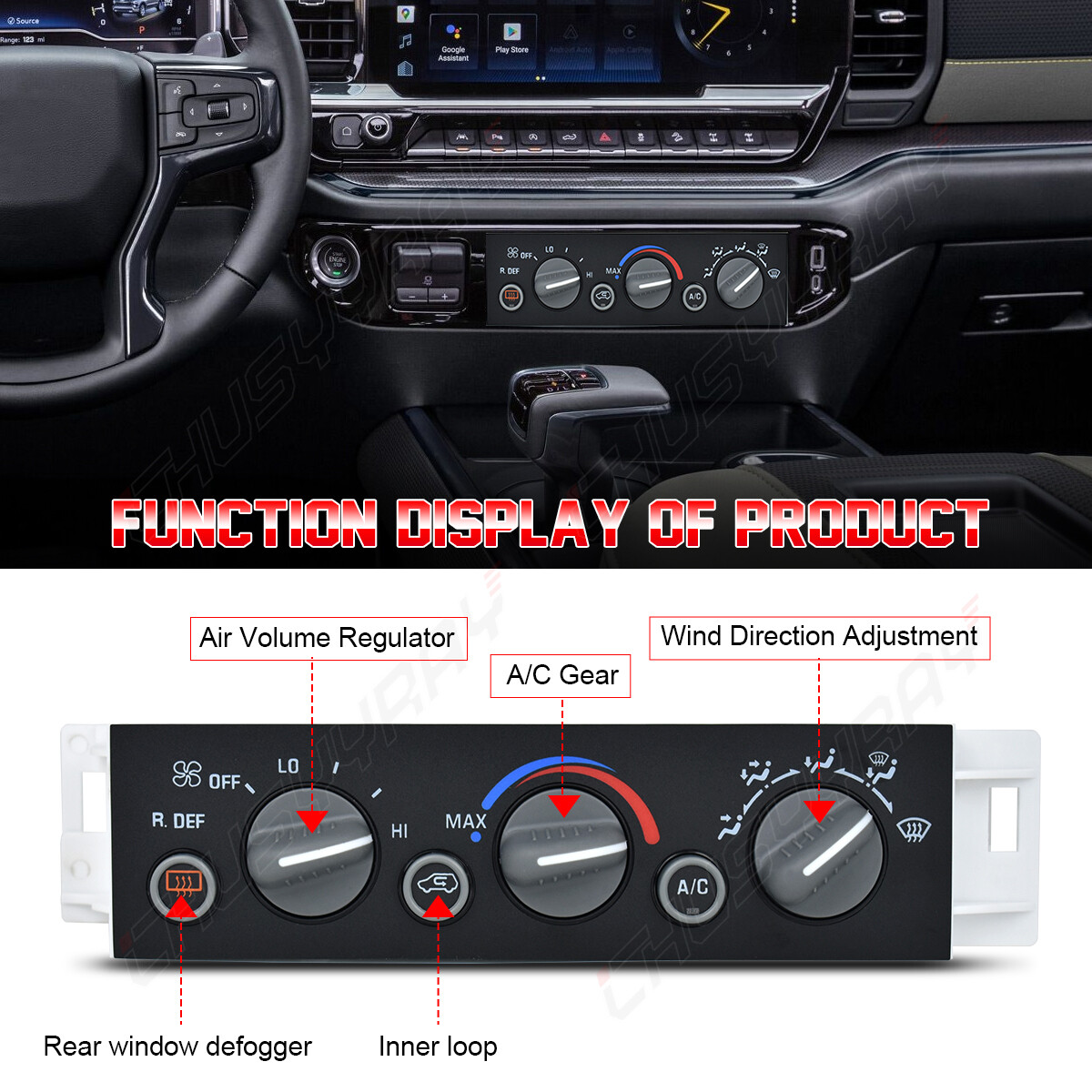 Fit for: For 2000-2000 Cadillac Escalade For 1996-1999 Chevrolet C1500 For 1996-1999 Chevrolet C1500 Suburban For 1996-2000 Chevrolet C2500 For 1996-1999 Chevrolet C2500 Suburban For 1996-2000 Chevrolet C3500 For 2001-2002 Chevrolet C3500HD For 1996-1999 Chevrolet K1500 For 1996-1999 Chevrolet K1500 Suburban For 1996-2000 Chevrolet K2500 For 1996-1999 Chevrolet K2500 Suburban For 1996-2000 Chevrolet K3500 For 1996-1999 Chevrolet Tahoe For 2000-2000 Chevrolet Tahoe, V8 5.7L only For 1996-1999 GMC C1500 For 1996-1999 GMC C1500 Suburban For 1996-2000 GMC C2500 For 1996-1999 GMC C2500 Suburban For 1996-2000 GMC C3500 For 2001-2002 GMC C3500HD For 1996-1999 GMC K1500 For 1996-1999 GMC K1500 Suburban For 1996-2000 GMC K2500 For 1996-1999 GMC K2500 Suburban For 1996-2000 GMC K3500 For 1996-1999 GMC Yukon For 2000-2000 GMC Yukon, V8 5.7L only Specification: Name: Climate Control Module Color: Black Condition: 100% Brand New Fitment Type: Direct Replacement Part Number: 16231165, 16238885, 16240105, 9378805, 599-006, 15-72547, 1572547, 599006 Please carefully check whether this air conditioning panel is the same as the one on your original car before purchasing. Thank you for your understanding. If you need help, please send us an email with your VIN number so we can help you check. Package included: 1 x Climate Control Module 1 x Removal Tool Set On Jun 26, 2025 at 01:32:01 PDT, seller added the following information: