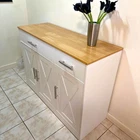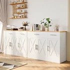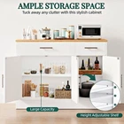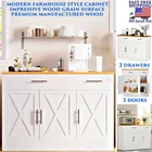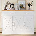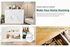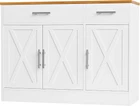 LARGE MODERN BUFFET STORAGE CABINET SPACIOUS 2 DRAWERS 3 BARN DOORS IMPRESSIVE WOOD GRAIN SURFACE MODERN FARMHOUSE STYLE HEIGHT ADJUSTABLE SHELF AMPLE STORAGE SPACE Absolutely fabulous large cabinet! Great addition to any decor! Sturdy, convenient and stylish! Spacious storage capacity and height! Very well suited for an apartment! This buffet cabinet incorporates both open and closed storage space. Spacious Tabletop Can place items for easy access. 2 Handy Drawers Classify knives and forks neatly. Smooth-running and with metal handles. 3 Barn Doors Each bottom cabinet with internal shelf. Multi-Functional Versatile design and a large amount of storage. Can be used as a console table in the hallway to display family photos and treasured keepsakes, an accent cabinet in your living room, or a TV stand for storing media devices. Modern Farmhouse Design An impressive wood grain surface with white finish. Easy to blend with any cottage, contemporary, modern farmhouse and more traditional interiors. Anti-Tipping Device The anti-tipping device on the back is designed to prevent accidents from happening. Quality Material Crafted from premium manufactured wood. Excellent stability and incredible durability. Weight Capacity The tabletop supports up to 180 lbs. Overall Dimensions: 15.7"D x 42.5"W x 32.1"H Size packed: 45 x 15 x 7 inches