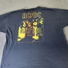 Showcasing the iconic AC/DC logo and Highway to Hell album cover, this 5XL black T-shirt is an essential piece for rock music enthusiasts. • 100% Cotton • Crew Neck • Short Sleeves • Graphic Print on Front & Back • Size: 5XL • Color: Black, Yellow • Official AC/DC Merchandise Light stain on bottom front. Top to bottom = 34 inches.