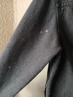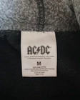 Brand/Subject: AC/DC officially licensed band apparel Item: Mens hooded denim trucker jacket with sweatshirt-style sleeves and hood Tag size: Medium Color: Black/charcoal wash Materials: Body 100% cotton; Hood & sleeves 60% cotton / 40% polyester; exclusive of decoration Tag/Label details: ©2018 Leidseplein Presse B.V.; under license to Perryscope Productions / Epic Rights; RN#1171508; Made in China Design features: Button front; dual chest flap pockets; attached drawstring hood; AC/DC oval chest patch at left chest; large "Back in Black 1980" AC/DC lightning bolt graphic on back Style: Band rock graphic denim trucker with hoodie hybrid sleeves/hood Notes: Refer to photos for overall fit and measurement references shown 3