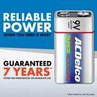 ACDelco 9V Super Alkaline Batteries are equipped with advanced technology you can count on. ACDelco batteries perform better than the competition devices, and they provide consistent discharge performance. ACDelco alkaline batteries are designed for long shelf-life with stainless steel pre-coating that prevents leakage and advanced ingredient formulation that helps maintain power over time. This re-closeable storage pack includes 12 9-volt batteries great for a variety of household devices, including smoke alarms, intercoms, walkie-talkies, and more. The 9V batteries contain no mercury or cadmium, making them a smart choice for your family and for the environment. A trusted national brand, ACDelco offers a wide variety of batteries you can count on, including alkaline batteries, lithium coin cell batteries, rechargeable batteries, and car batteries. 9-Volt 1.5V super alkaline batteries Provides reliable and lasting performance for both high and low drain devices Long shelf life; holds power and will not vent or leak when stored in a cool, dry place Our batteries have zero mercury and cadmium; safe for the home and better for the environment ACDelco is a trusted and dependable national battery brand On Feb 25, 2025 at 00:57:08 PST, seller added the following information: