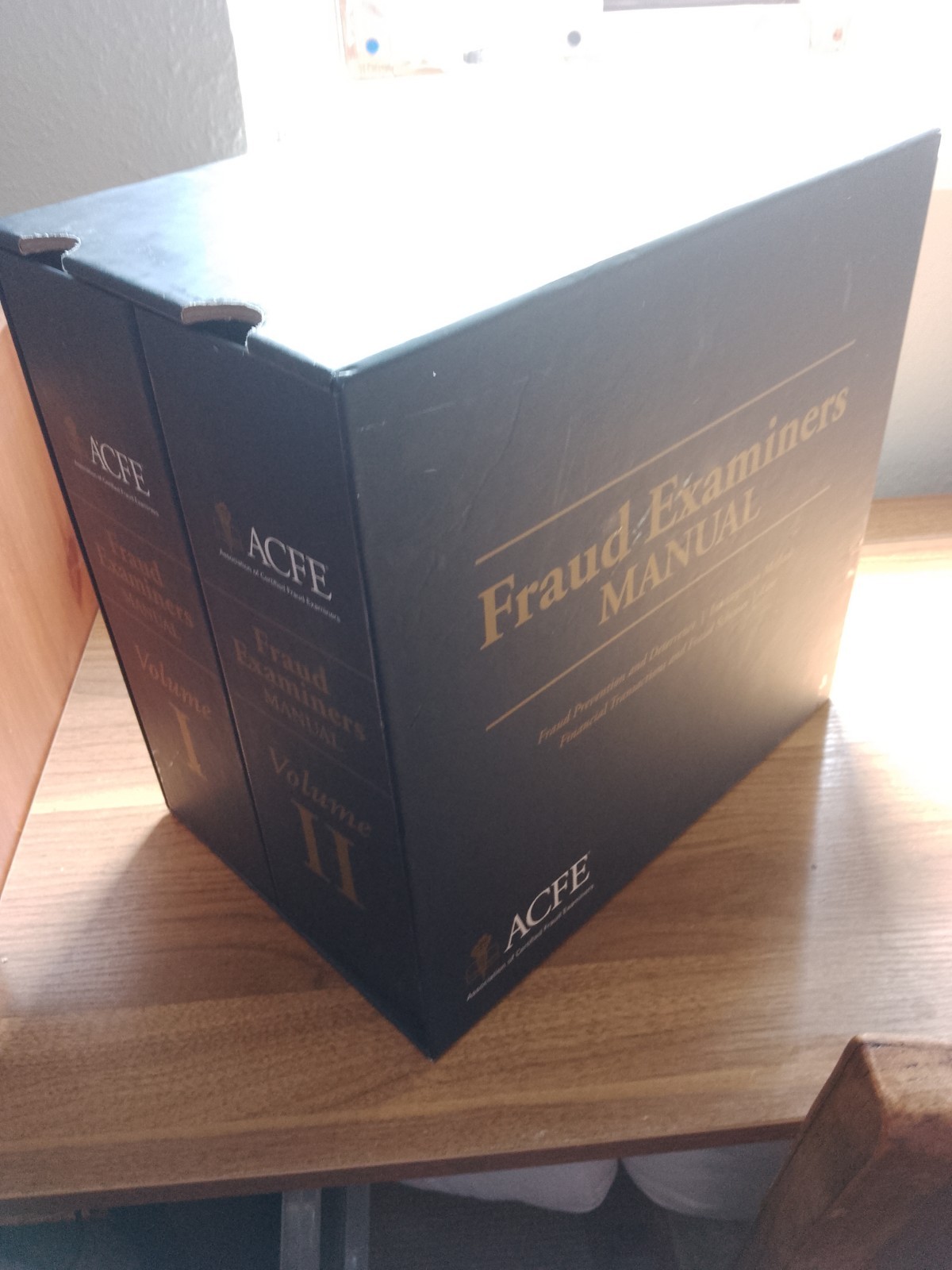 Twin folder Fraud Examiners Manual, both sets of paperwork shrink wrapped. Comes in a cardboard slip case, not in the best of condition unfortunately as you can see from the photos, but a bit of sellotape would help on the back top and bottom edges. 2016 edition.