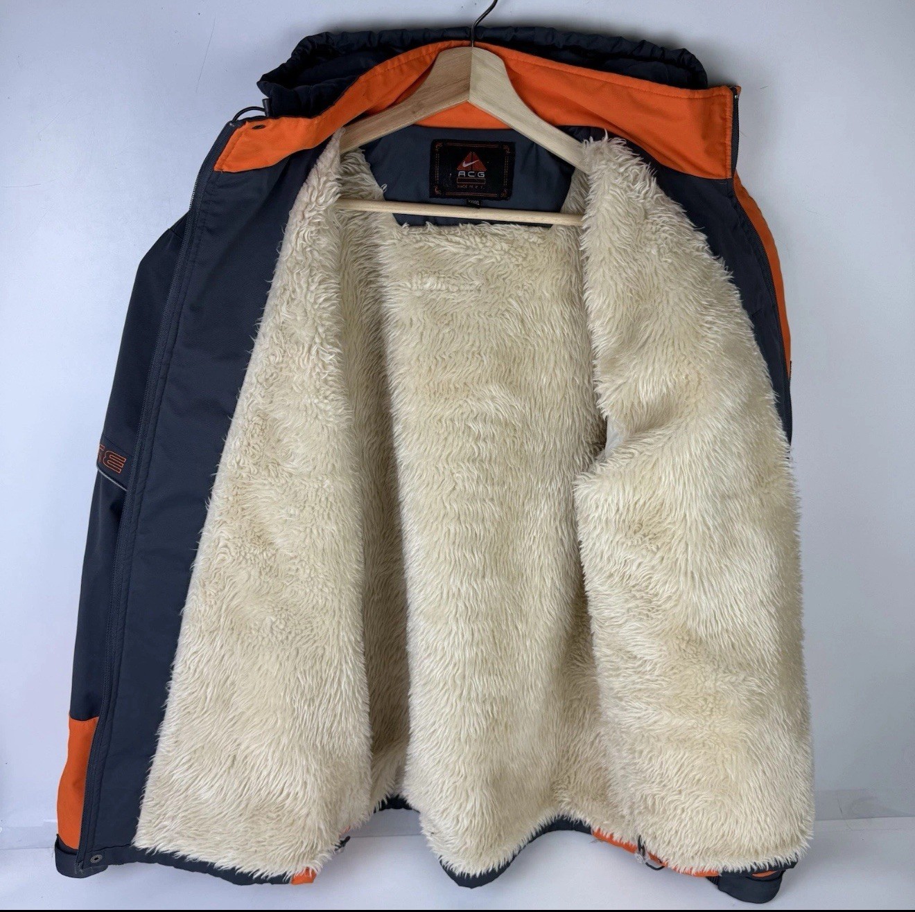 The ACG Nike 90's Vintage Windbreaker in size 4XL but fitting more like a Large is a stylish and practical choice for men looking for a casual jacket for the winter and fall seasons. Made with a solid gray color and featuring a zip closure, this windbreaker is machine washable and lined with polyester for added comfort. The Nike logo accent adds a touch of sporty flair to the classic design, making it a versatile and trendy addition to any wardrobe.