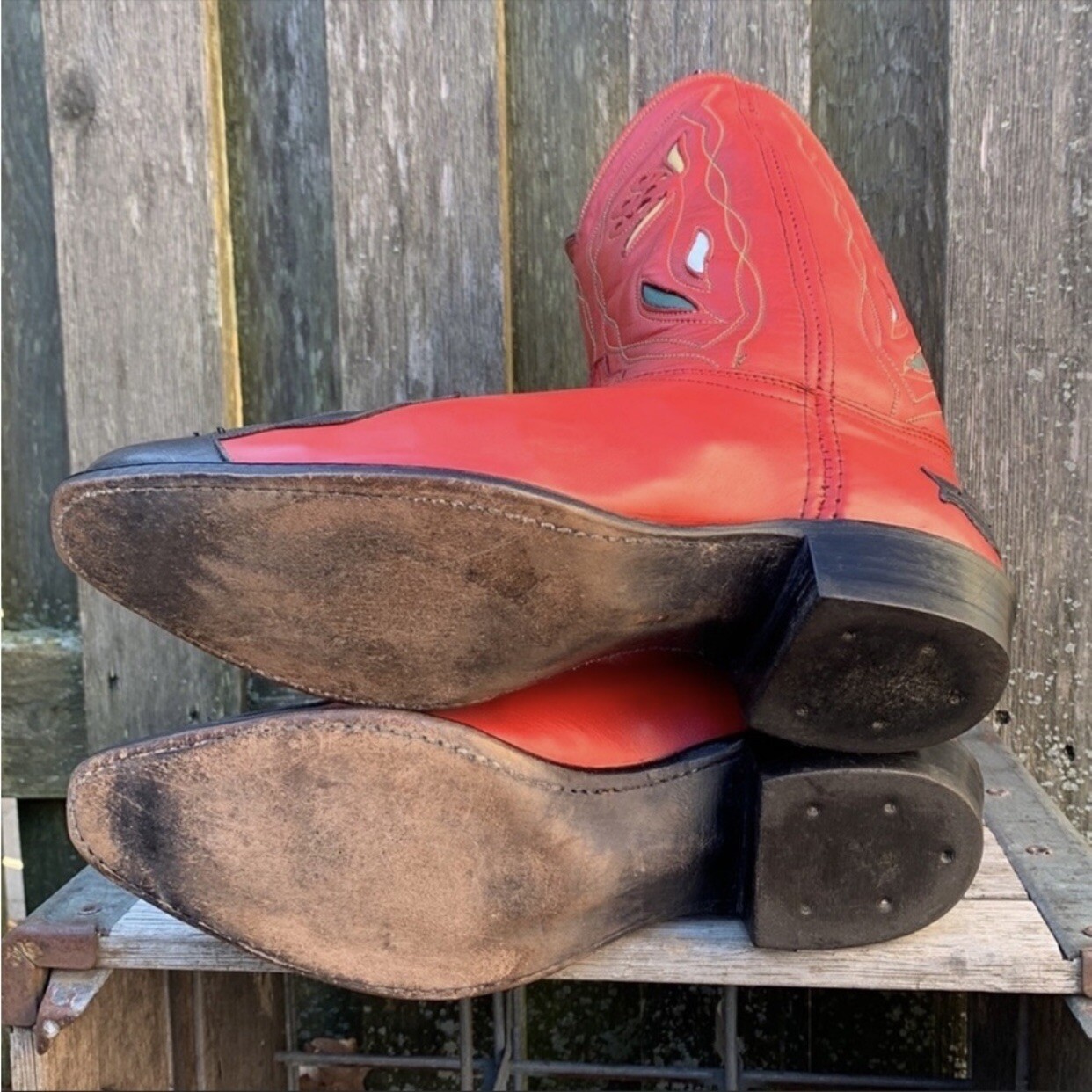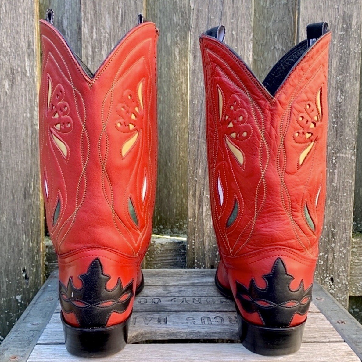 Beautiful Rare Vintage Collection ACME Heart Floral Red Black Leather Short Cowgirl Cowboy Western Boots Women’s Size 10 M Made in USA 100% Genuine Leather Red • Black • White • Green • Yellow Flower Geometric Inlay Overlay Short, Above Ankle, Below Mid-Calf Height Snip Tapered Rounded Square Toe Excellent condition. Please view all photos. Approx measurements: Shaft 11.5” Heel 1.25” Good to know: not all ACME boots were constructed equally. These are all leather—inside and out. Many of the ones you see out here today have fabric linings and faux leathers or skins. A collector’s dream—especially at this price. At Botablu, our passion & purpose is curating top quality, unique/rare, vintage & new boots. We are one of the original professional, trusted boot sellers on multiple marketplaces with over 1900 Perfect 5-Star Ratings, thanks to our AWESOME customers. We’re most well known for our vintage Frye & Old Gringo. We love & live our products & this lifestyle. You’ll get exactly what you see, ship with care, same or next day. We appreciate you considering us for your next purchase. Your support of our small business means the world. ** Join us in celebrating the beauty of boots and view our full collection at Botablu! ** If you like 40s 1940s 50s 1950s 60s 1960s flowers classic classics vintage retro western cowboy cowgirl rockabilly texas montana usa country music concert bachelorette party wrangler rodeo yellowstone ranch horses fringe southwest aztec lucchese stallion heritage rois of mercedes tony lama liberty rocketbuster double d ranch corral justin larry mahan stetson corral justin dan post nocona hondo ferrini stetson resistol ranch, you’ll love these. Please ask any questions you may have prior to purchasing as we are not able to cancel orders nor do we accept returns.