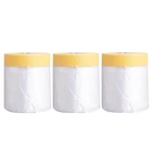 High density tape and drape is lightweight and tear resistant, and not easy to scratch, with premium quality dust-proof effect. Lightweight protective sheeting ideal for car automotive paint, household appliance, house decoration, furniture protection and drop cloth protection from dust and paint, water. 【Surface Protection】The pre-Taped Masking Film is the transparent tear-resistant paintable plastic overspray protective masking film, and can cover your furniture, carpet, floor, sofa, table, bed, closet, car when you renovate your house or travel. It can prevent household appliances and furniture from dust and paint during home decoration or painting. Can also be used as car dust cover, car paint spray paint protective film. 【Drop Down Design】Roll design for quick and convenient unfold the film and cover various small appliance. You can cut plastic tape of different lengths according to different items. It is perfect protector cover for moving supplies, packing supplies. 【Tough and Tear Resistance】Made of high quality material, waterproof, durable. Easy to unpack and spread out. The film is lightweight and highly resistant to tearing, ensuring complete surface protection by attracting dust and debris. 【Easy To Use】You just stick the tape side in right place, unravel the plastic film, it will slowly spread the plastic film to cover the object. Light weight, easy to roll out, paste and tear. Single person can do it and save you time, money, and effort. 【Masking Film Size】: Includes 3 rolls of protective film, each roll of 22" W x 33 Yds Long.