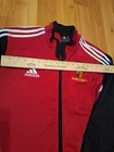 Elevate your activewear collection with the adidas Men's Hawks Track Jacket. This large-sized, retro-style jacket is a versatile addition to your wardrobe, featuring a vibrant multicolor design that adds a fun twist to your athletic ensemble. It's crafted for comfort and performance, boasting a mid-length cut that ensures ample coverage for a variety of sports and activities. The jacket comes with practical full-zip closure, making it easy to layer over your favorite gear. Its long sleeves and band collar offer a classic look while providing warmth and wind protection. The athletic fit is designed to allow for freedom of movement, ensuring you can focus on your performance without distractions. With the convenience of machine washability, this track jacket is as easy to care for as it is stylish. Color may vary because of lighting, in great shape only worn once.