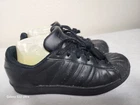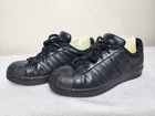Elevate your casual footwear game with these black leather sneakers from Adidas. Featuring a lace-up closure and standard shoe width, these sneakers are perfect for walking and other casual activities. The rubber outsole provides comfort and durability, while the leather lining and fabric insole make sure your feet stay comfortable throughout the day. Crafted in Vietnam, these men's sneakers boast a solid pattern with a low-top shoe shaft style. With a UK shoe size of 5 and a US shoe size of 5.5, these Adidas Lace sneakers are perfect for those who need a size that's difficult to find. The sneaker has the iconic Adidas brand logo and belongs to the athletic type. Perfect for casual occasions, these trendy sneakers are a must-have in your footwear collection. Location I-52