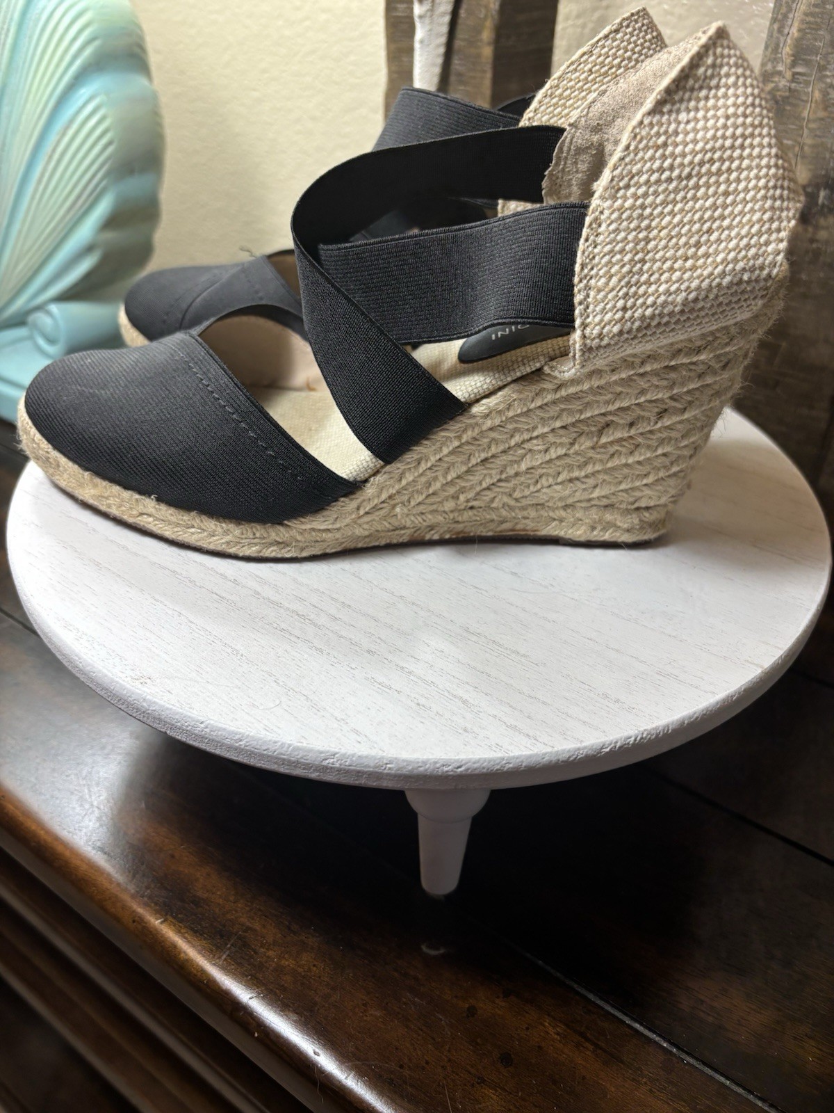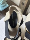 The product is a pair of Adrienne Vittadini black and tan wedge heel espadrilles in a size 8. These stylish and trendy shoes feature a textile upper material with a multicolor exterior. The wedge heel design adds a touch of elegance, making them perfect for any casual or dressy occasion. The espadrille style offers a comfortable and breathable option for women looking to elevate their footwear game.