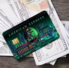 The AE EXPRESS Credit Card Skin Decal Sticker is a small rectangle-shaped sticker made of matte UV vinyl, suitable for standard credit card size. It features a multicolor American Express logo design in an art deco style, with a durable and scratch-resistant finish. The sticker is removable, waterproof, and easy to apply with a peel-and-stick method. This one-piece decal is perfect for personalization of credit cards for women, teens, men, and adults. Made in the United States, this card skin sticker offers stylish protection for your credit card with a residue-free removal option.