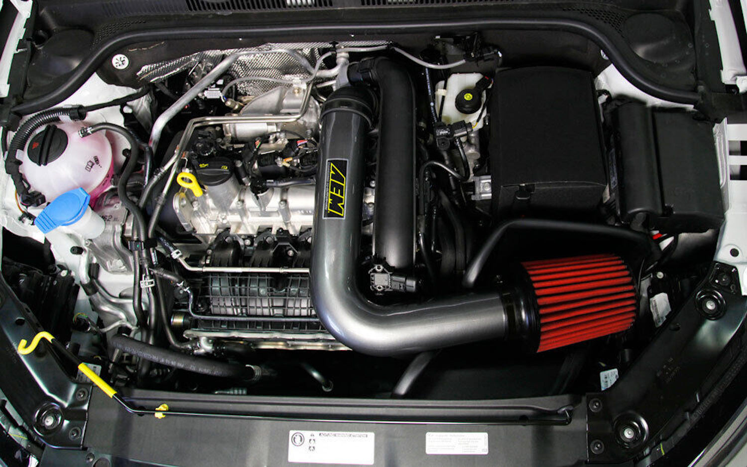 $ImageURL1$ AEM 21-797C Gunmetal Gray Aluminum Cold Air Intake for 16-18 Volkswagen Jetta PART NUMBER: 21-797C BRAND: AEM DESCRIPTION AEM Cold Air Intake; Gunmetal Gray Aluminum Tube; Red Dryflow Filter; with Heat Shield The Performance Cold Air Intake System produces Horsepower and Torque gains by replacing your vehicles restrictive factory air filter and air intake housing. This air intake system was designed, tuned and dyno-tested to fit specific Volkswagen Jetta models. Air enters the system through an oversized AEM Dryflow synthetic washable air filter for outstanding air flow, filtration and performance. The air filter is placed into the original air box space and is protected by a heat shield which is designed to reduce intake air temperature and increase Horsepower. The air intake tube is constructed from mandrel-bent aluminum featuring a durable gunmetal gray powder coated finish. This air intake system was developed to accommodate the engines factory emissions control devices. The tapered cylinder shaped AEM Dryflow air filter is made from an oil-free, synthetic filter media that can be used for up to 100,000 Miles before cleaning is needed (depending on driving conditions). The air intake system is easy to install with commonly available tools and it is backed by AEM's Lifetime Limited Warranty. Features An Inexpensive And Easy Horsepower Upgrade Designed To Improve Throttle Response And Engine Sound Low Restriction Aluminum Intake Tube Lasts Up To 100,000 Miles Before Service Is Required Washable And Reusable Lifetime Air Filter Limited Lifetime Warranty Product Specifications Tube Finish: Powder Coated Tube Color: Gunmetal Gray Tube Material: Aluminum Filter Color: Red Filter Material: Synthetic Protection Type: Heat Shield
