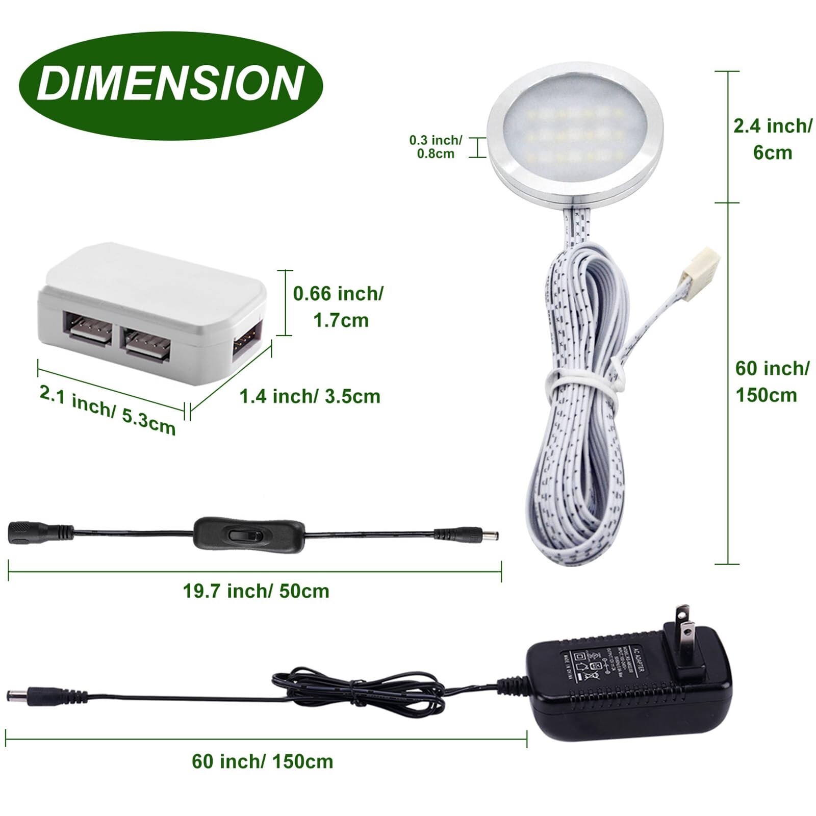 AIBOO RGBW RGB + White Color Changing Christmas Xmas Under Cabinet LED Lights Kit IR Remote Puck Lights for Kitchen Counter Shelf Furniture Ambiance Lighting (RGBW, 4 Lights, 12W) Product Details Color: RGBW Brand: AIBOO MPN: YK-300000007 UPC: 712411878320 EAN: 0712411878320 Brand: AIBOO Color: RGBW Material: Metal Style: Modern Light fixture form: Puck Is Discontinued By Manufacturer : No Product Dimensions : 7.87 x 5.91 x 2.76 inches; 1.08 Pounds Item model number : YK-300000007 Batteries : 1 CR2032 batteries required. Date First Available : September 8, 2016 Manufacturer : AIBOO Country of Origin : China Customer Reviews: 4.2 4.2 out of 5 stars 567 ratings Brand: AIBOO Color: RGBW Material: Metal Style: Modern Light fixture form: Puck Room Type: Kitchen, Bedroom, Home Office Product Dimensions: 2.3"L x 2.3"W x 0.3"H Specific Uses For Product: General purpose Indoor/Outdoor Usage: Indoor Power Source: Corded Electric Installation Type: Surface Mount Special Feature: Dimmable Control Method: Remote Light Source Type: LED Finish Type: Polished Shade Material: Plastic Number of Light Sources: 4 Voltage: 12 Volts Theme: Christmas Light Color: RGBW Shape: Round Lighting Method: Up/Down Light Item Weight: 1.08 Pounds Wattage: 12 watts Controller Type: Remote Control Unit Count: 1 Count Brightness: 800 Lumen Mounting Type: Adhesive,Under Cabinet Fixture Type: Non Removable Assembly Required: No Manufacturer: AIBOO UPC: 712411878320 Recommended Uses For Product: Mood Lighting Part Number: under-cabinet-rgbw-4 Item Weight: 1.08 pounds Country of Origin: China Item model number: YK-300000007 Batteries: 1 CR2032 batteries required. Is Discontinued By Manufacturer: No Finish types: Polished Maximum Compatible Wattage: 3 Watts Special Features: Dimmable Plug Format: A- US style Batteries Included?: No Batteries Required?: No Date First Available: September 8, 2016 RGBW is a combination of RGB and pure white light color, which can provide natural and comfortable white light rather than blue white light. The rgbw puck light kit comes with a 40-key IR remote control, providing a variety of lighting effects and dimmable modes to fulfill different requirements. Power adapter is 100/120Vac to 12Vdc, very safe to touch by hands. Up to 85% energy saving comparing to traditional lighting. Suggested applications: dinning room, kitchen, bedroom, furniture, counter, closet, drinks cabinet, party lighting.
