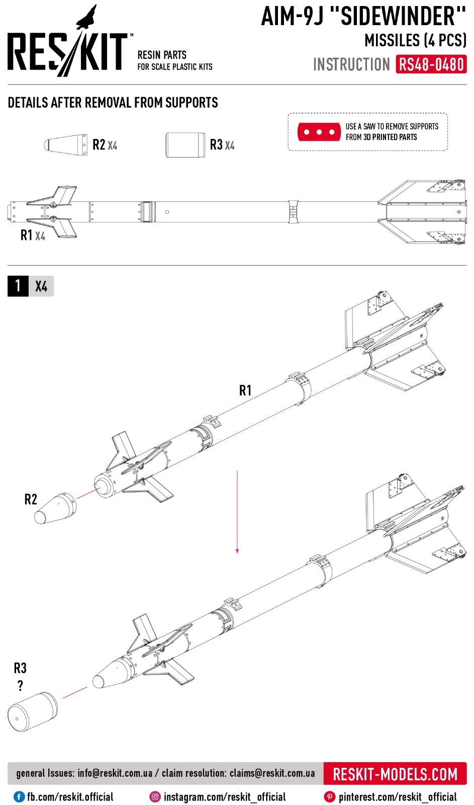 AIM-9J "Sidewinder" missiles (4 pcs) (F-4, F-5, F-16, F-15, F-14, Mirage F.1, Harrier, Mirage III, Hawk) (3D Printed) ResKit RS48-0480 - for Plastic Model Kit Enhance Your Scale Models with ResKit | High-Quality Resin & 3D-Printed Accessories RESKIT - Accessories for Scale Plastic Kits Upgrade your scale model collection with high-quality resin parts from ResKit. Our Ukrainian-made parts are meticulously crafted to provide the most accurate and detailed representation of original components. Whether you're building aircraft, helicopters, military vehicles, or figures, ResKit has the perfect parts to enhance your project. Scale: 1/48 Manufacturer: RESKIT (Accessories for Scale Plastic Kits) Country/Region of Manufacture : Ukraine Condition : New in Box Category: Resin & 3D accessories Type of equipment : Aircraft Type of product: Arms and weapons Recommended kit: Any AIM-9J "Sidewinder" missiles (4 pcs) for aircraft model kit: F-4 F-5 F-16 F-15 F-14 Mirage F.1 Harrier Mirage III Hawk ResKit is a Ukrainian manufacturer of high-quality resin parts and accessories for scale models . The products are distinguished by a high level of detail and accuracy, which allows modelers to create the most realistic models of military equipment, aviation and other objects. Key Features: Premium Quality: Our resin parts are made with the finest materials and precision engineering. Extreme Detail: Experience unparalleled detail and realism in your models. Wide Range: Choose from a vast selection of parts for various scales and subjects. Easy to Assemble: Our parts are designed for easy integration into your existing model kits. Superior quality! ResKit parts allow you to create a model with incredible detail. ---------------------------- >>> Visit our eBay store! <<< You will find everything you need at great prices. Scale model accessories are a wide range of parts, spares, and components that can help you make your model even more realistic and detailed. In our catalog, you will find everything you need to assemble and repair model cars, airplanes, ships, tanks, and weapons. Our accessories are made from high-quality materials and meet all standards. We offer a wide range of models and sizes so you can find what you need. Buy scale model accessories in our store and make your model even more unique!