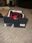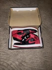 The product is a pair of Air Jordan 1 Mid Black Gym Red sneakers in size 8.5 for men. These lace-up sneakers are designed for activewear and casual occasions, featuring a mid-top silhouette with a rubber outsole for comfort and durability. The leather upper material and foam insole provide a stylish and cushioned fit, while the colorful theme and signature Jordan branding add a touch of flair to the classic design. Perfect for basketball and other athletic activities, these sneakers are a must-have for any sneaker enthusiast.