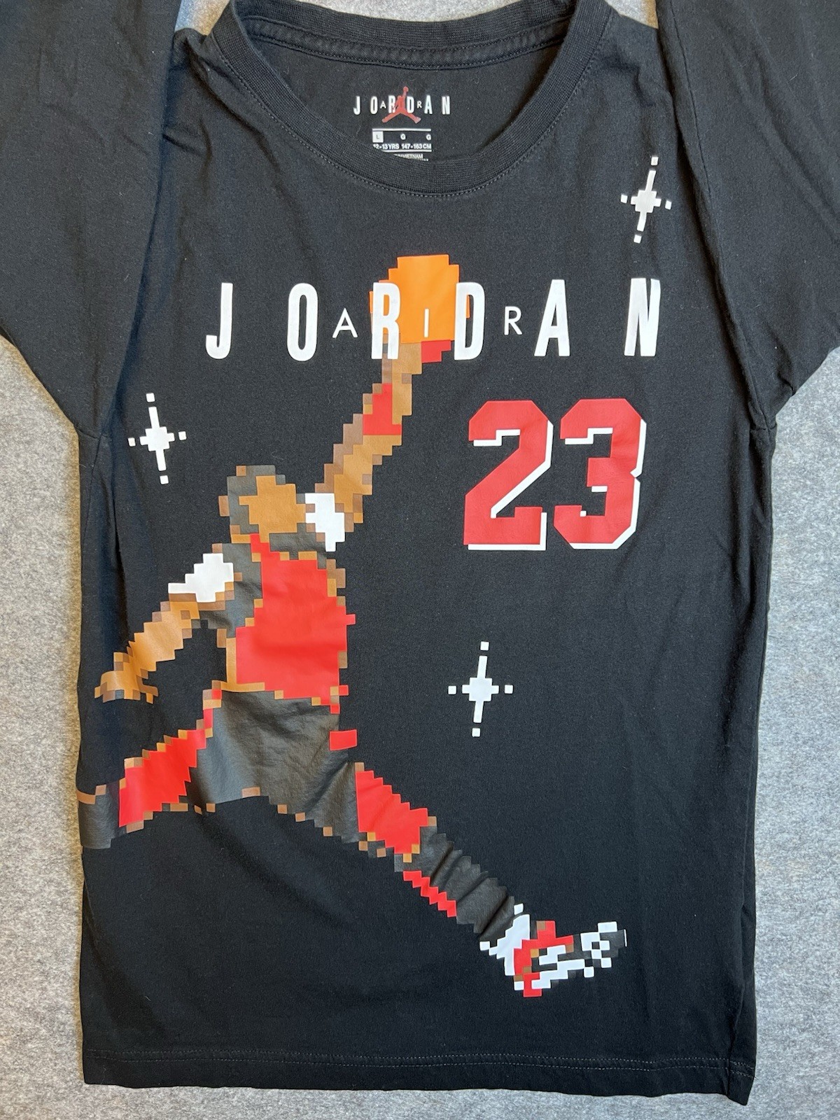 AIR JORDAN Black Long Sleeve Digital Pixels Of MJ In Air T-Shirt Size Large #23 Used. Item: N47(2) 0797